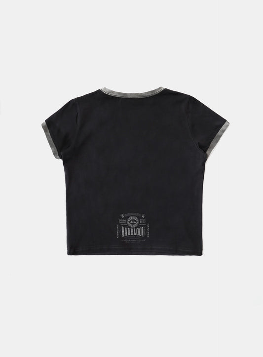 [w-tee25-054] 弧形标志尘感撞色T恤 - 黑色