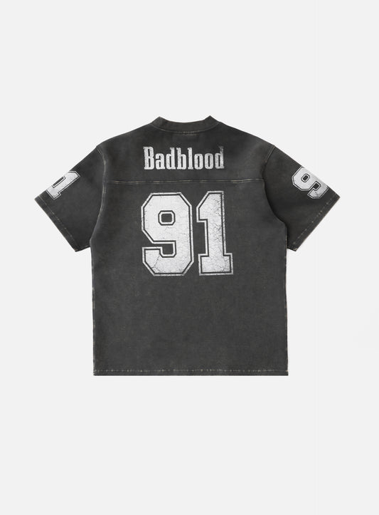 [w-tee25-051] 91 裂纹印花V领T恤 - 黑色
