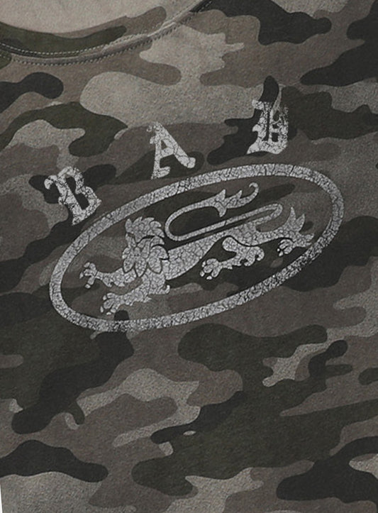 [w-tee25-046] 裂纹印花T恤 - 绿色迷彩