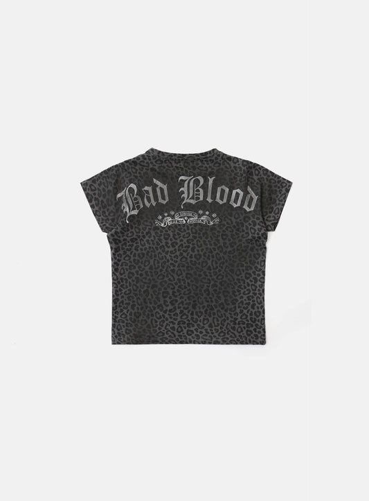 [w-tee25-045] 裂纹印花T恤 - 黑色豹纹