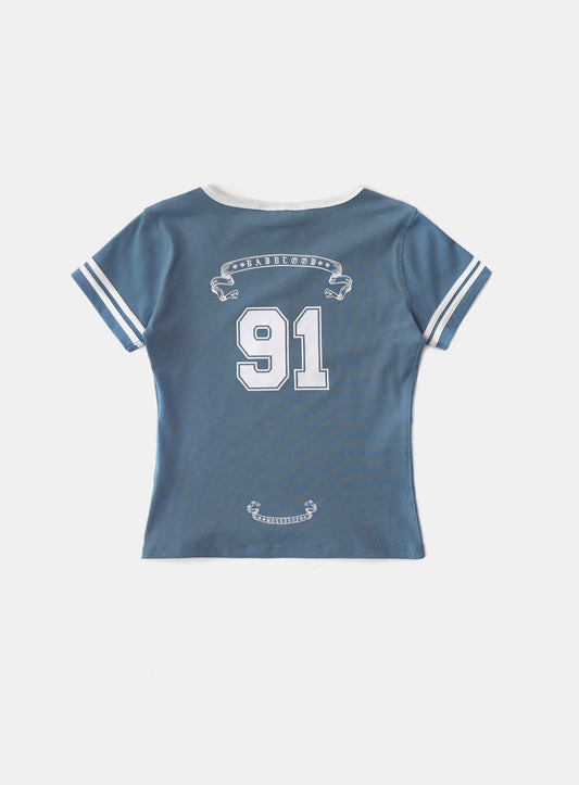 [w-tee25-109] 91 V领运动T恤 - 浅蓝色
