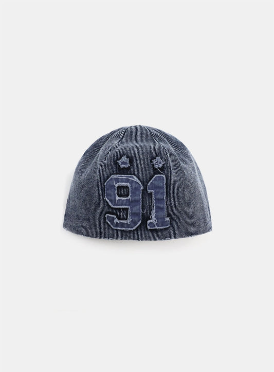 [w-hat25-001] 锈色牛仔针织帽 - 蓝色