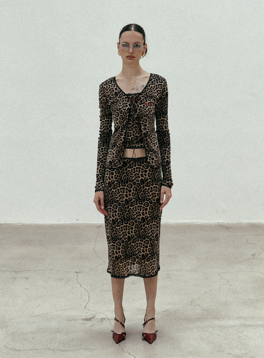 [w-cdg24-020] 豹纹领带开衫 – 棕色