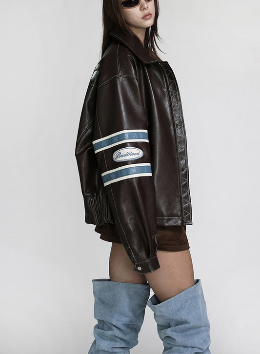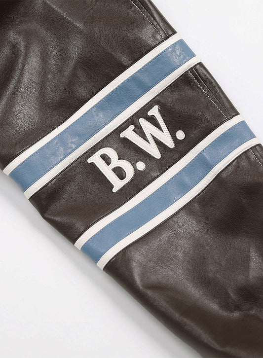 [w-jkt22-033] 91 皮革棒球夹克 - 棕色