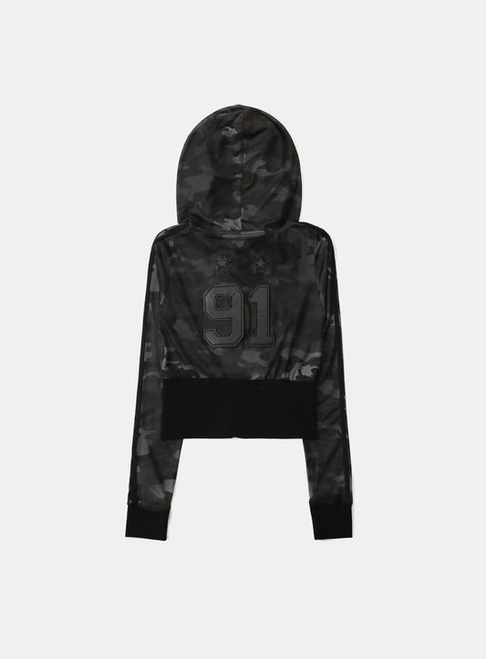 [w-hde25-020] 复古俱乐部修身连帽拉链外套 - 黑色迷彩