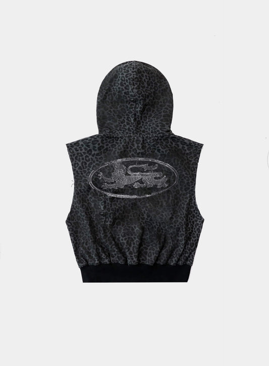 [w-hde25-027] Mystic Patch 无袖连帽工装夹克 - 黑豹纹