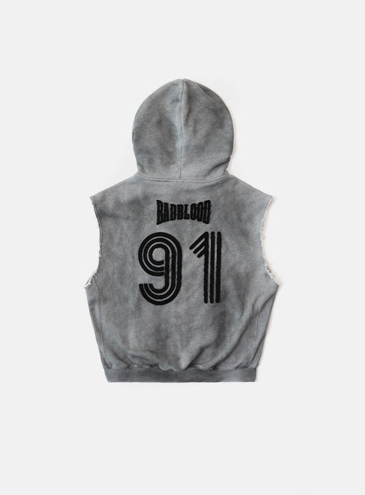 [w-hde25-025] 弧形标志无袖连帽拉链外套 - 暗灰色