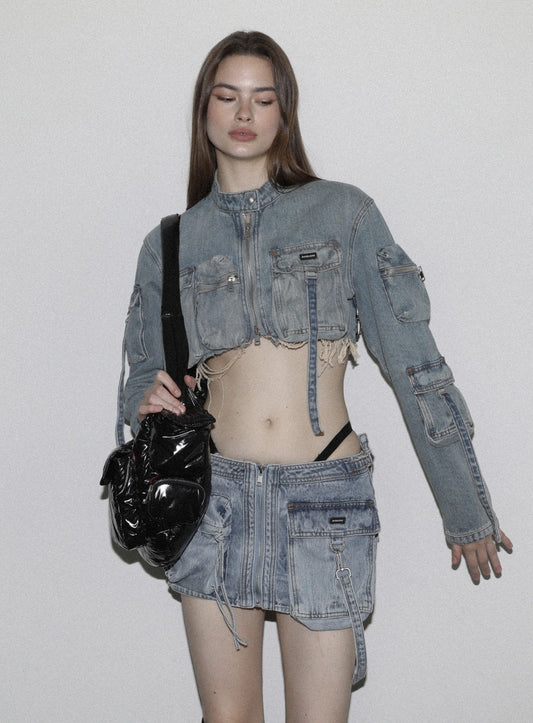 [w-jkt23-030] Bonnie 牛仔工装短款夹克 - 蓝色