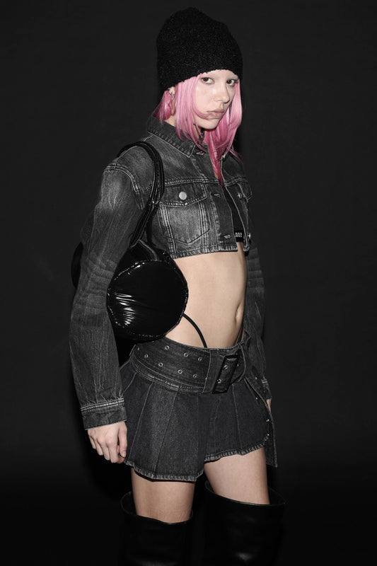 [w-jkt23-037] 超短款牛仔卡车司机夹克 - 黑色