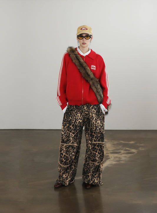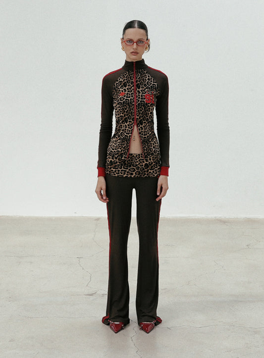 [w-pts24-054] 低腰弧形束脚裤 - 豹纹