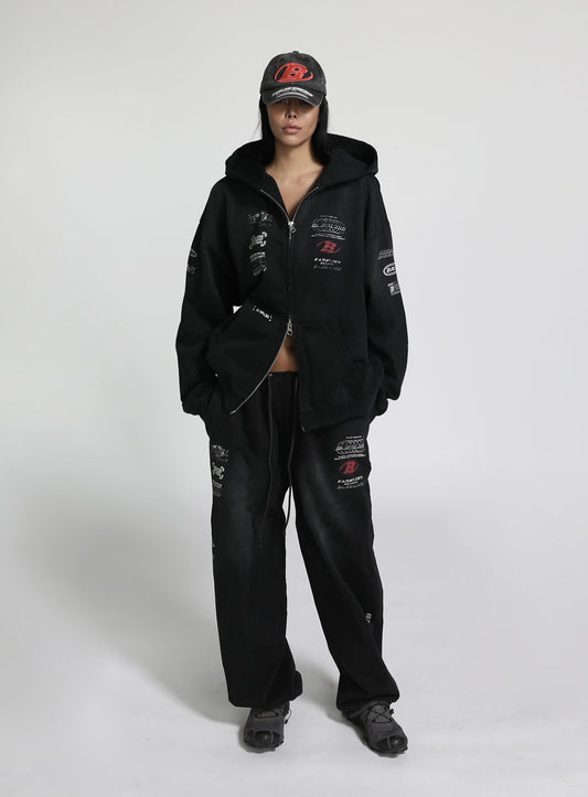 [w-pts23-055] F1 旧效果慢跑裤 - 黑色