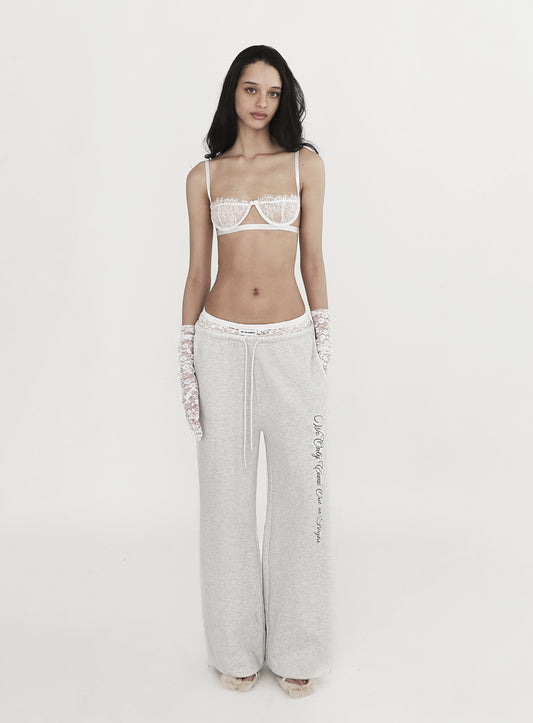 [w-pts23-056] 纯蕾丝边慢跑裤 - 灰色