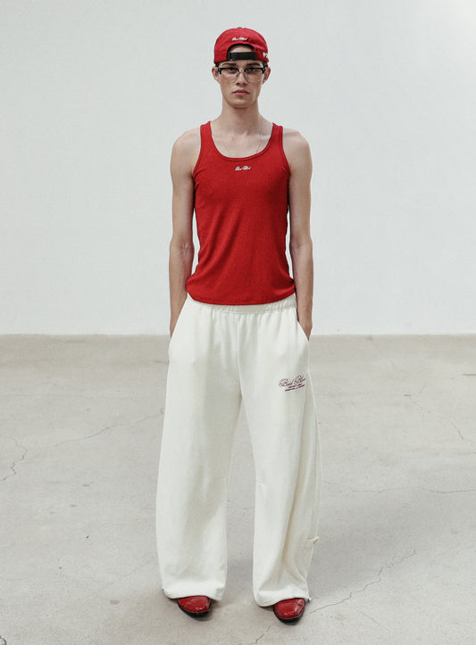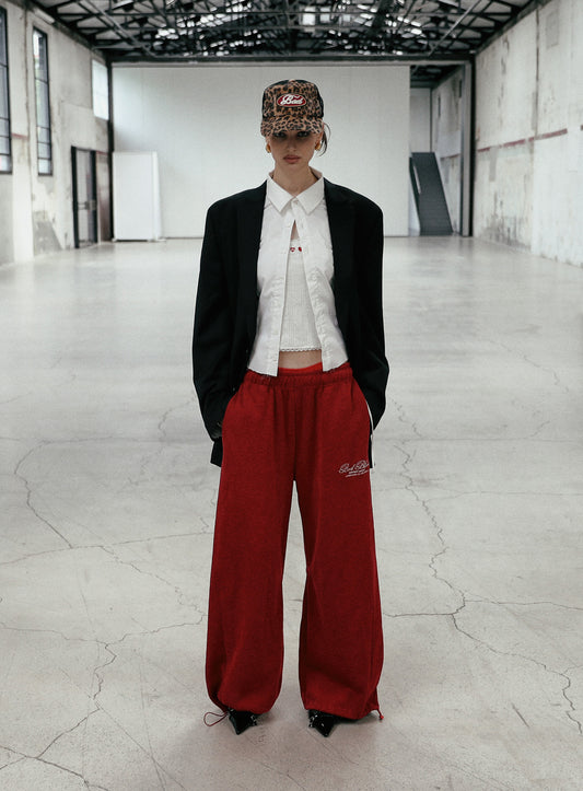 [w-pts24-049] 经典徽标 2 Way 弧形慢跑裤 - 红色