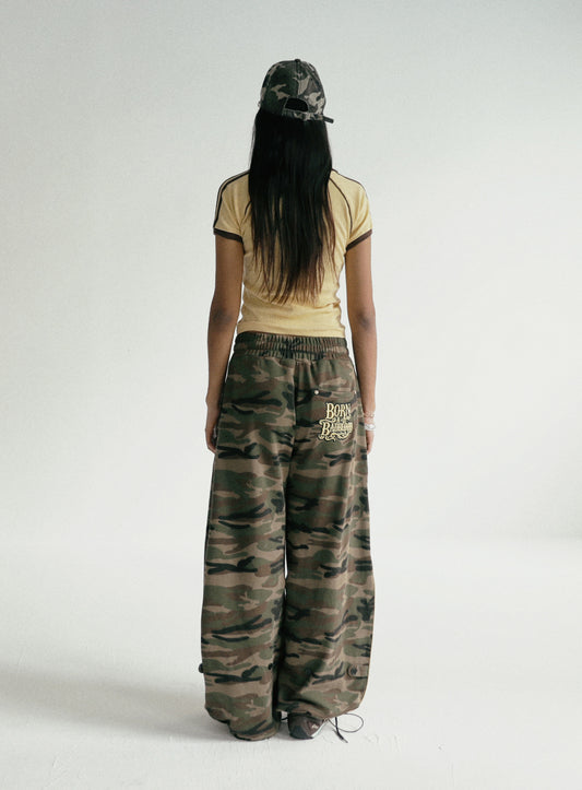 [w-pts24-047] 迷彩 2 Way 弧形慢跑裤 - 军装