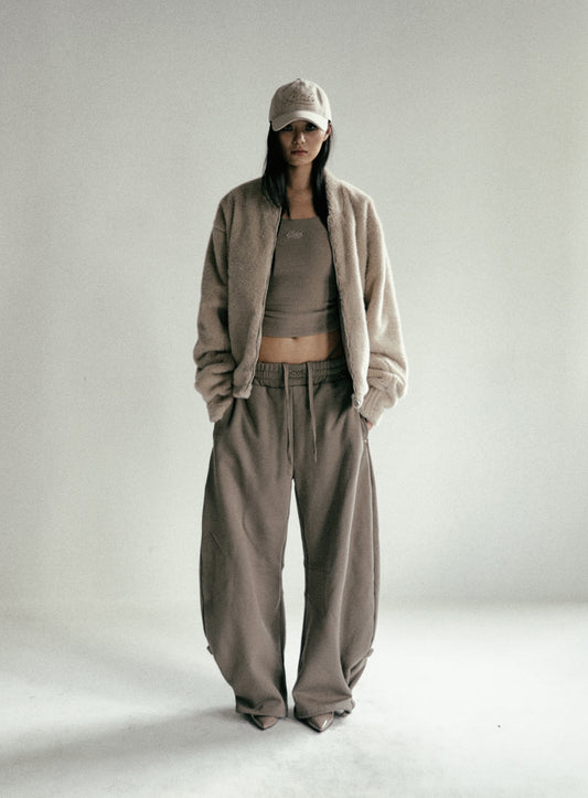 [w-pts24-078] Beyond 柔软抓绒慢跑裤 - 烟草色