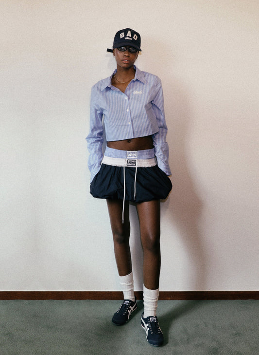 [w-sht24-009] 短款衬衫 - 蓝色/条纹