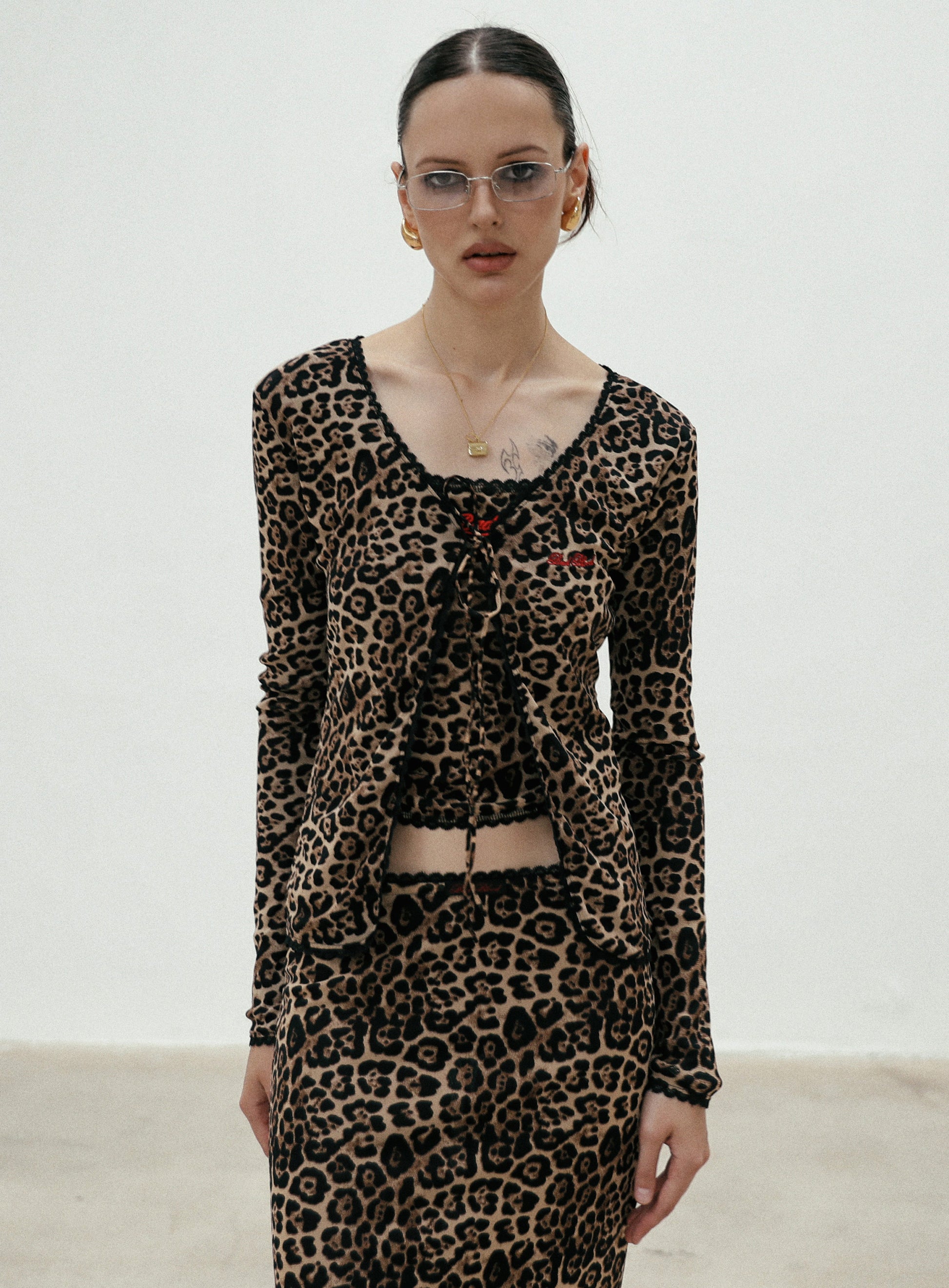 [w-cdg24-020] 豹纹领带开衫 – 棕色
