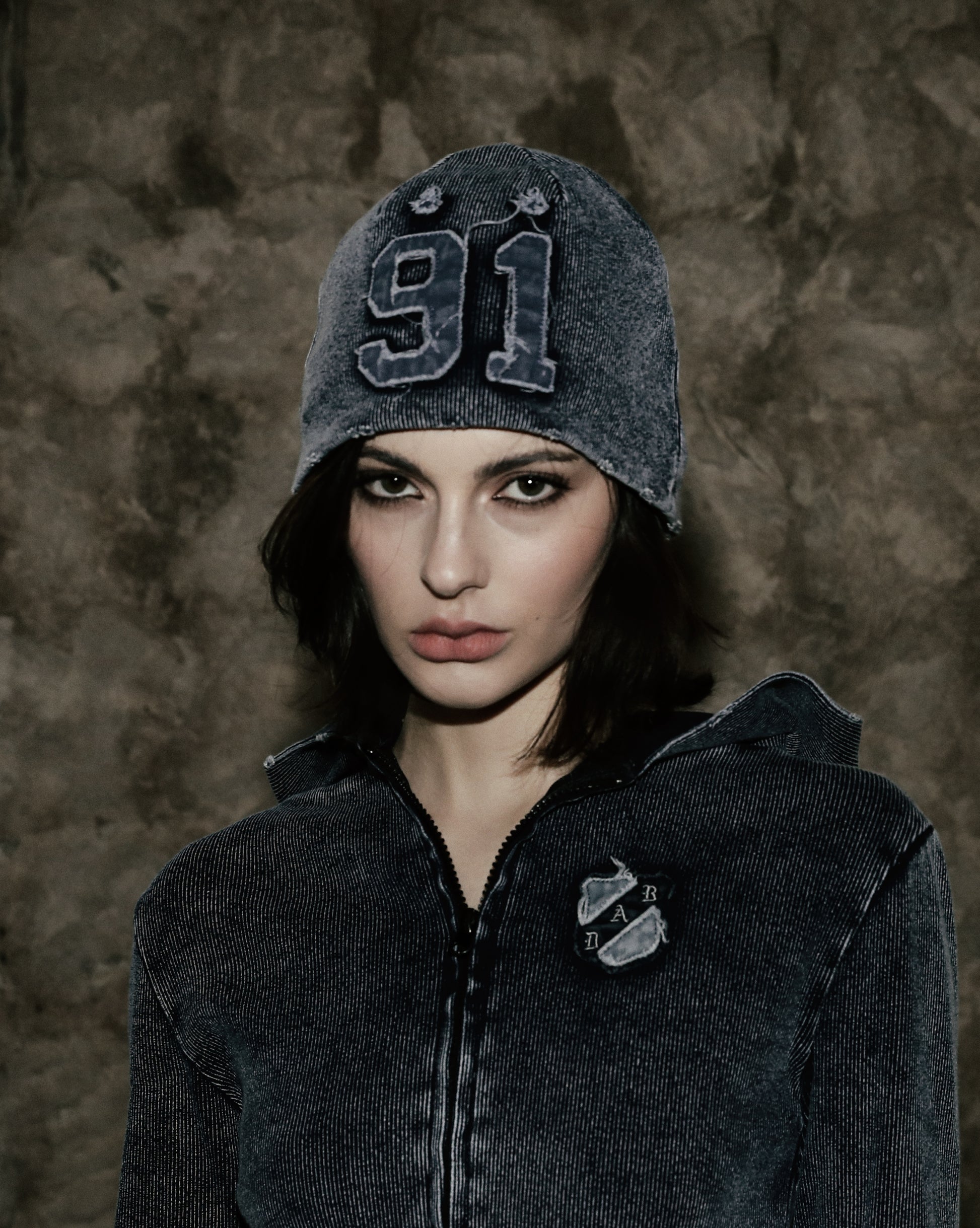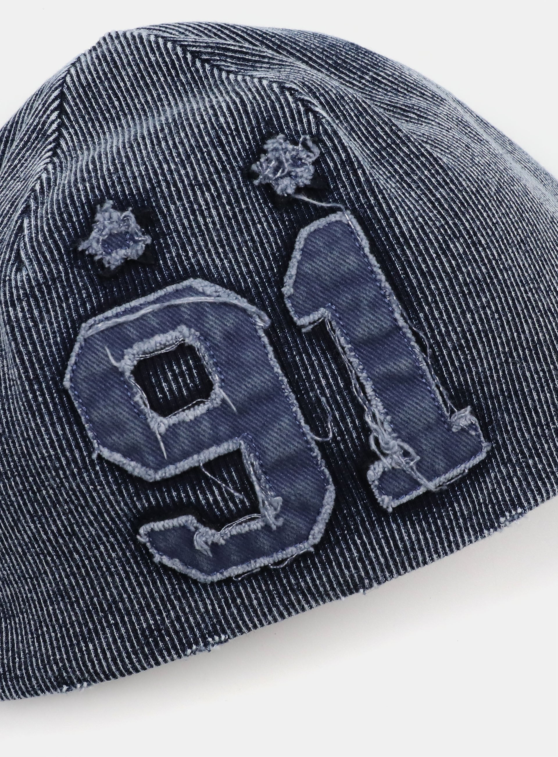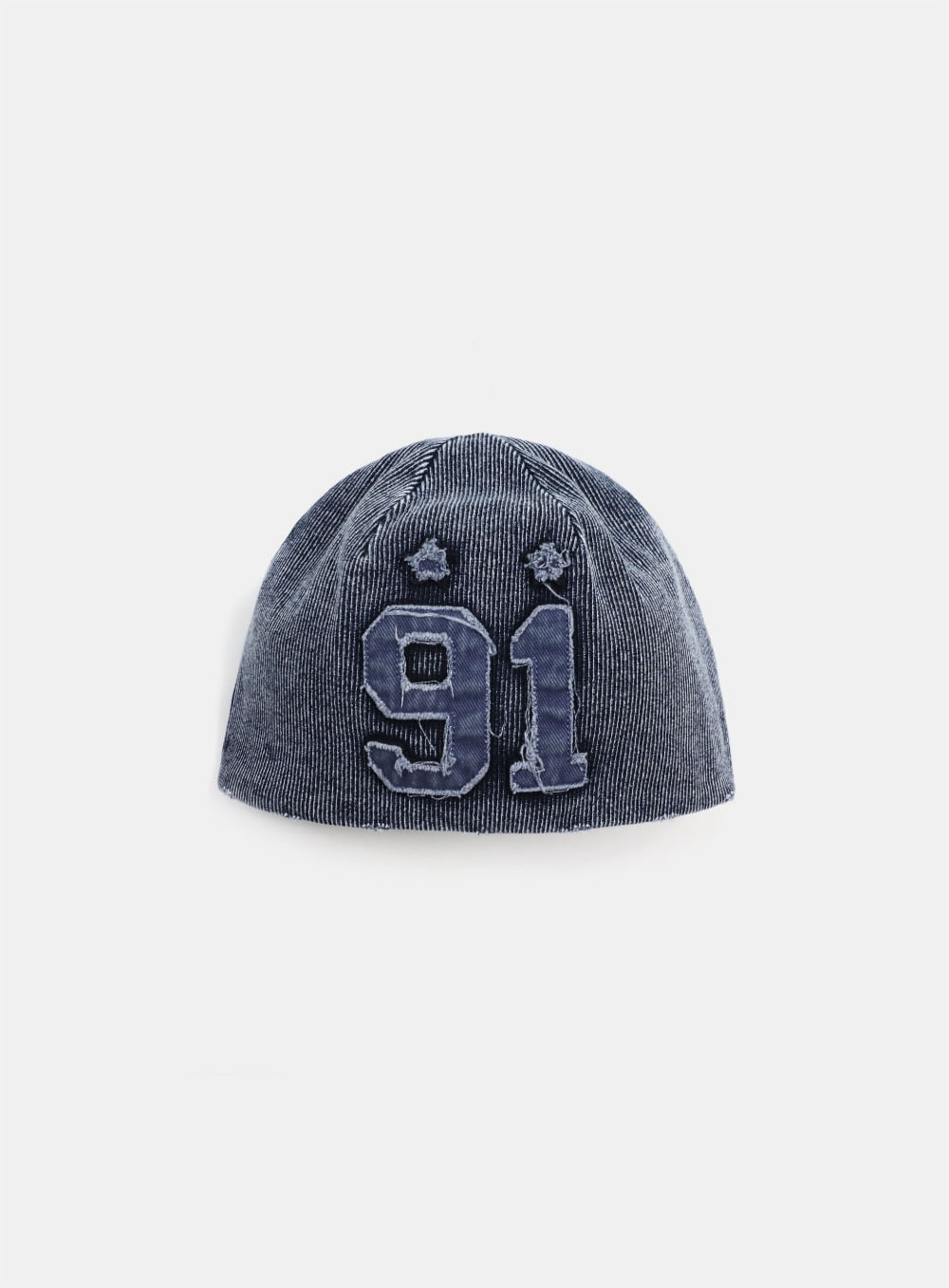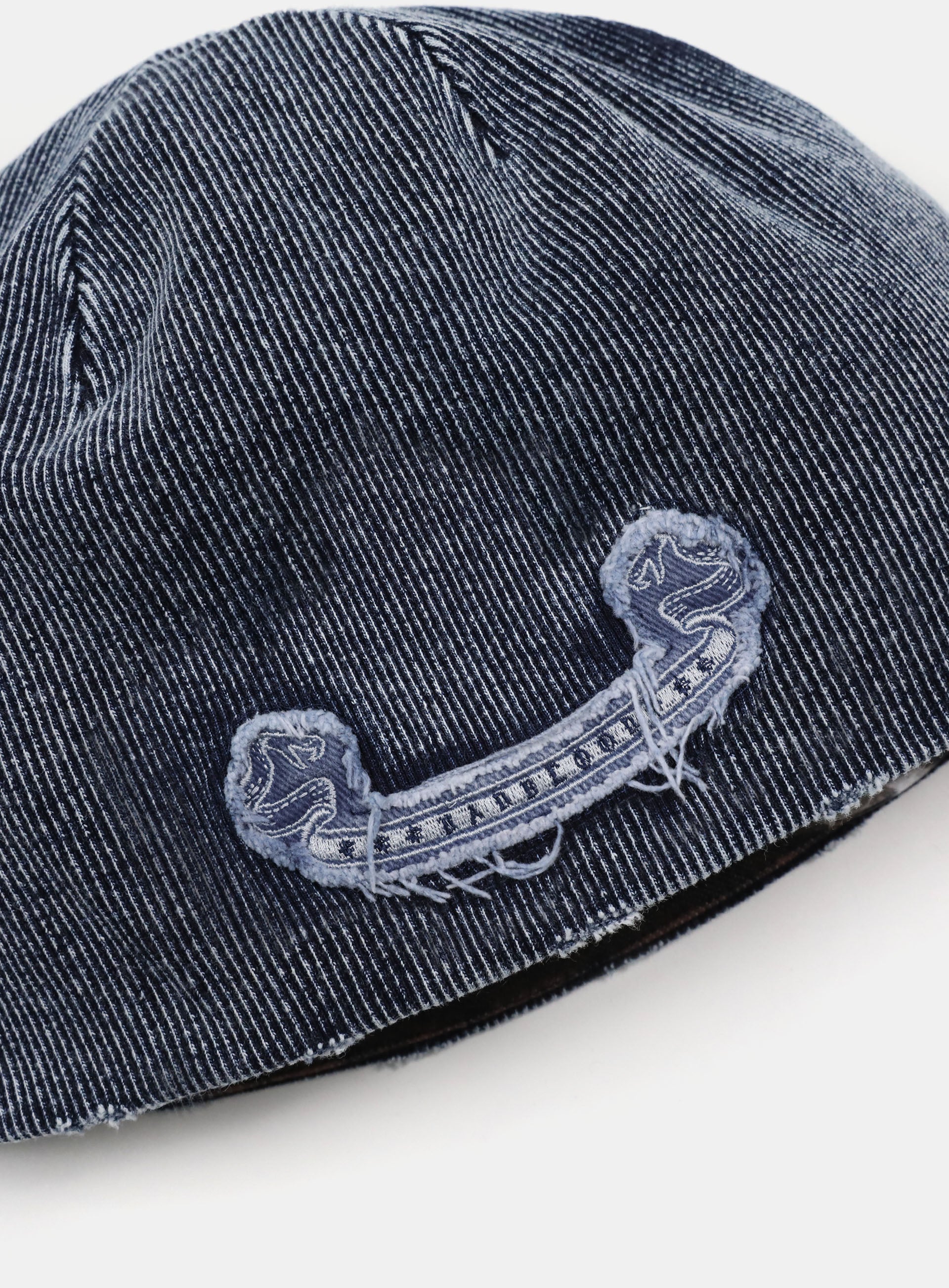 经过盐洗工艺处理的棉质面料,呈现出复古牛仔色调的 Rusty Denim Beanie。