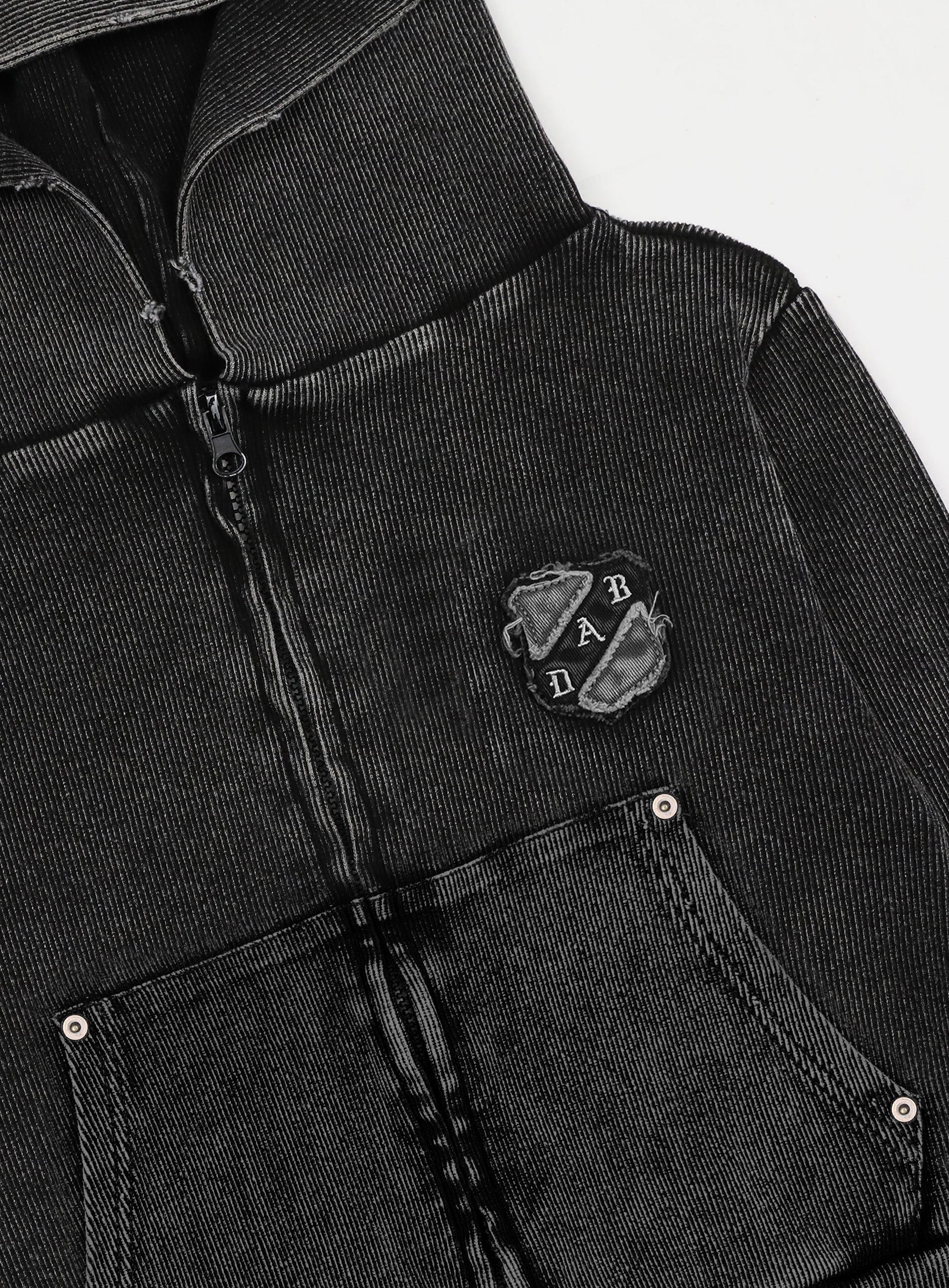 [w-hde25-008] 锈色牛仔连帽夹克 紧身款 - 黑色