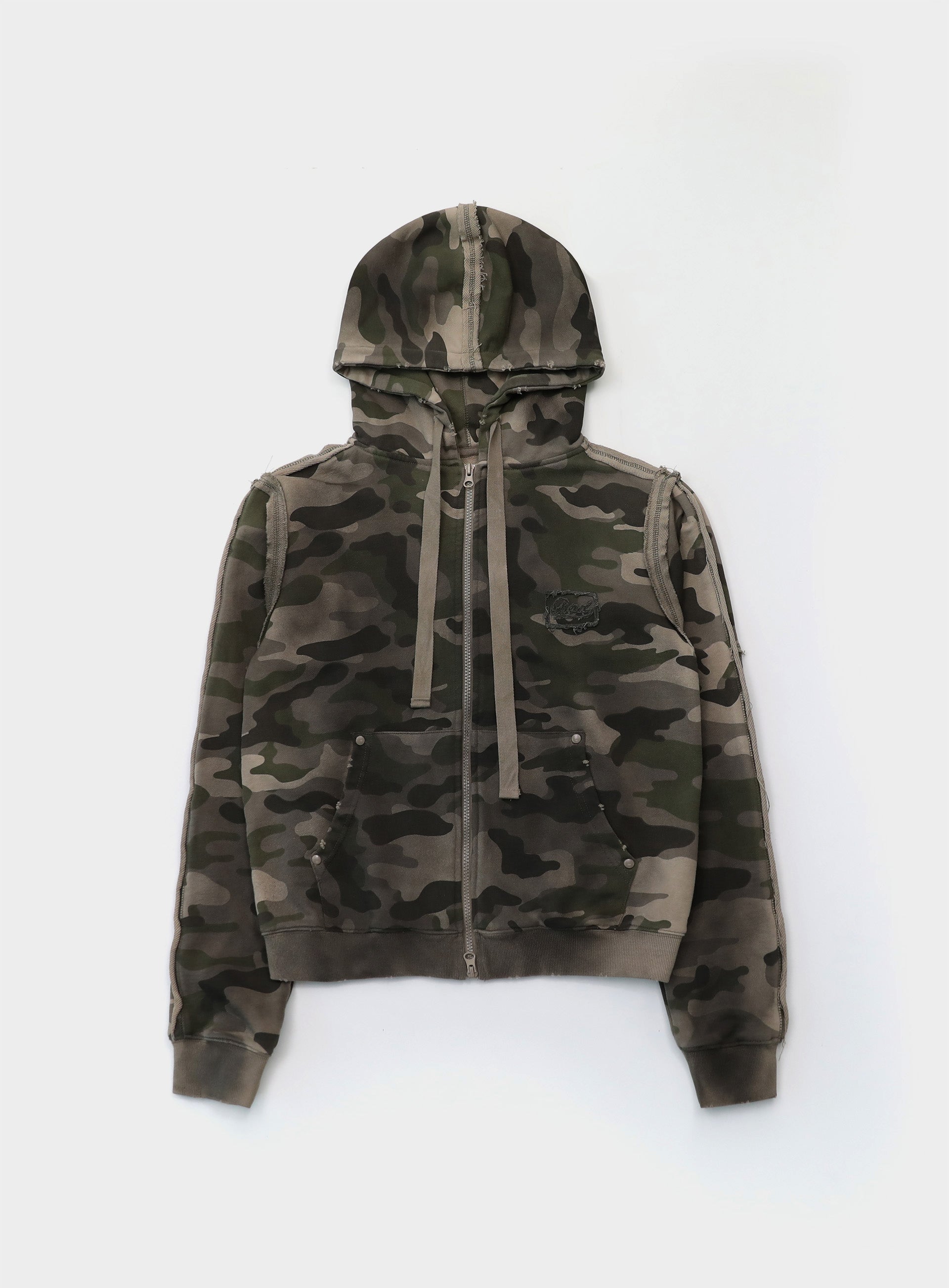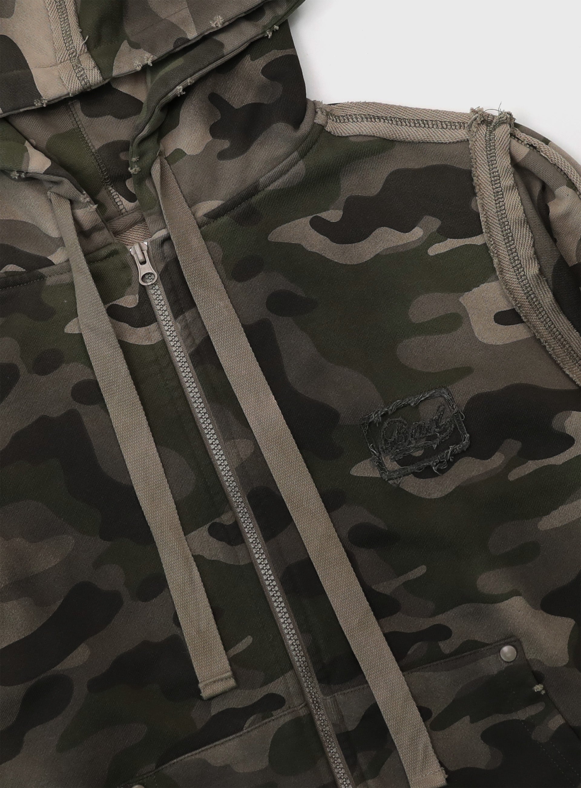 [w-hde25-012] Raw Edge 连帽拉链修身外套- 浅迷彩