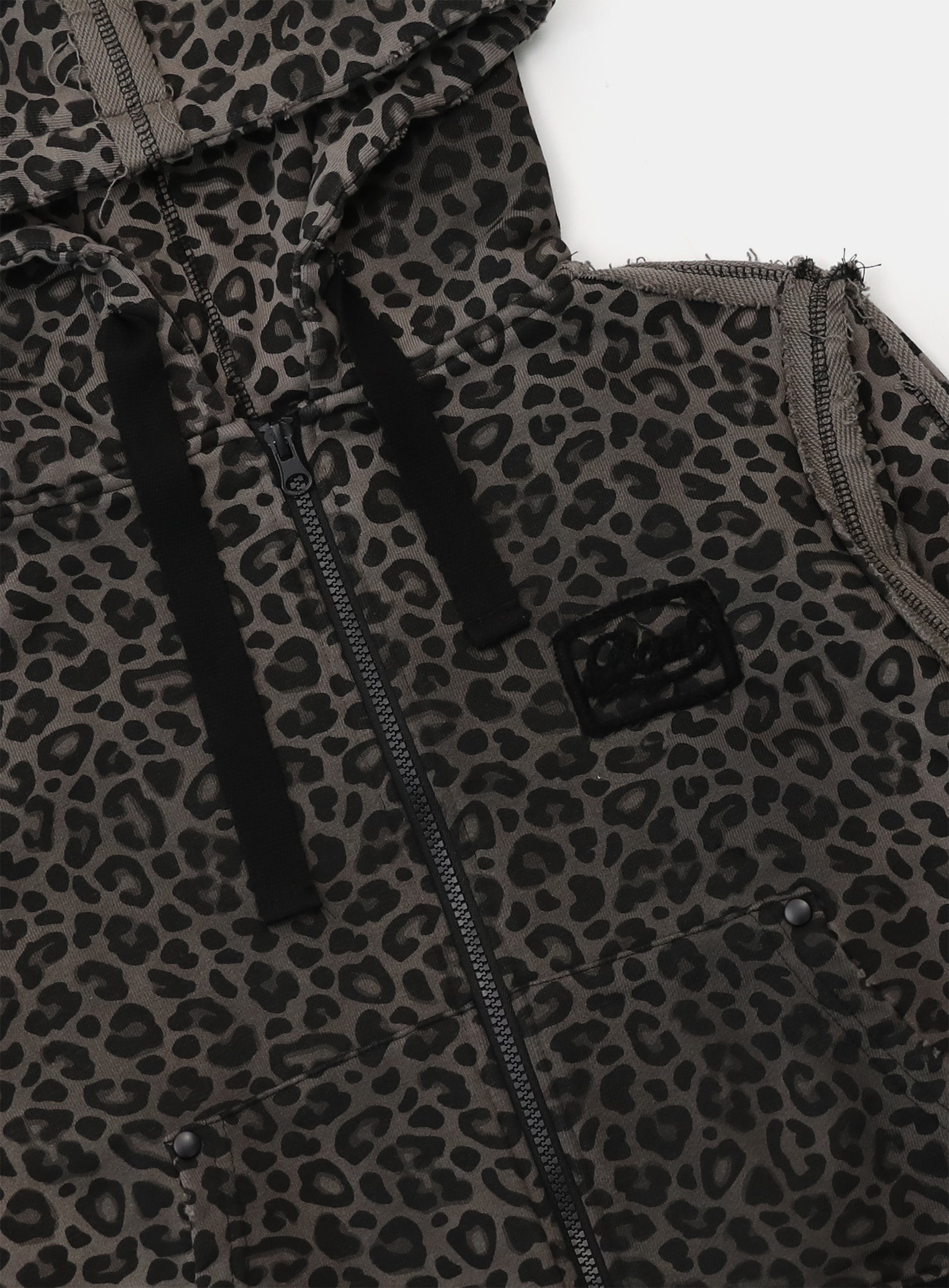 [w-hde25-013] Raw Edge 连帽拉链修身外套 - 黑色豹纹