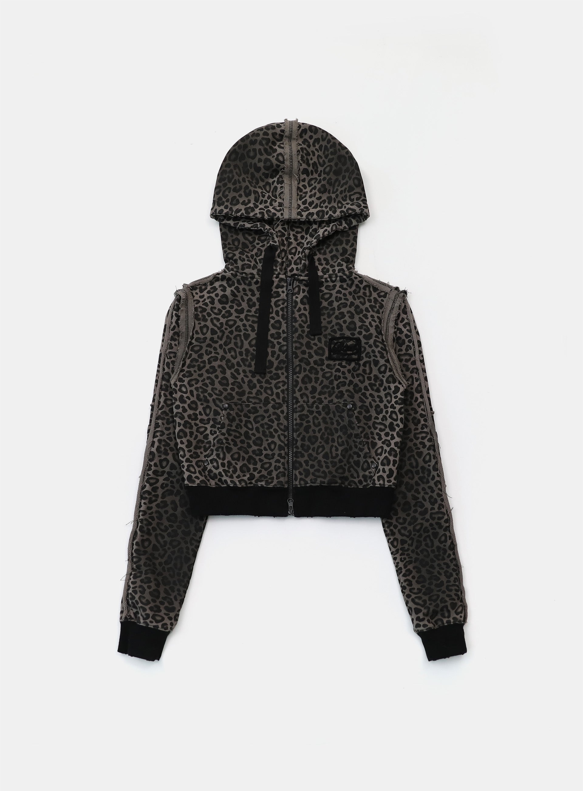 [w-hde25-013] Raw Edge 连帽拉链修身外套 - 黑色豹纹