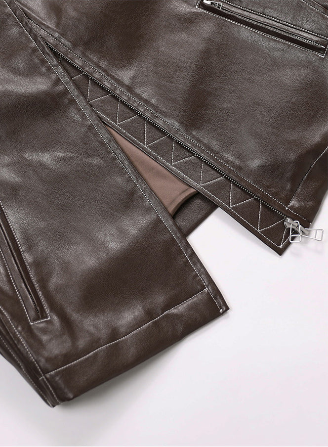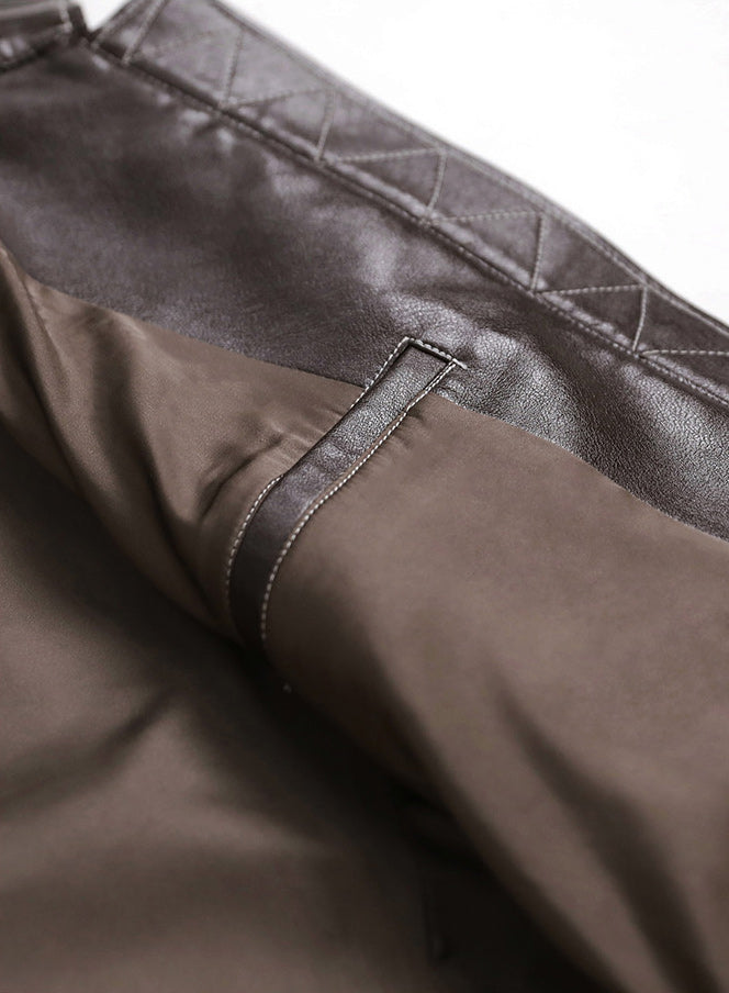[w-jkt22-033] 91 皮革棒球夹克 - 棕色