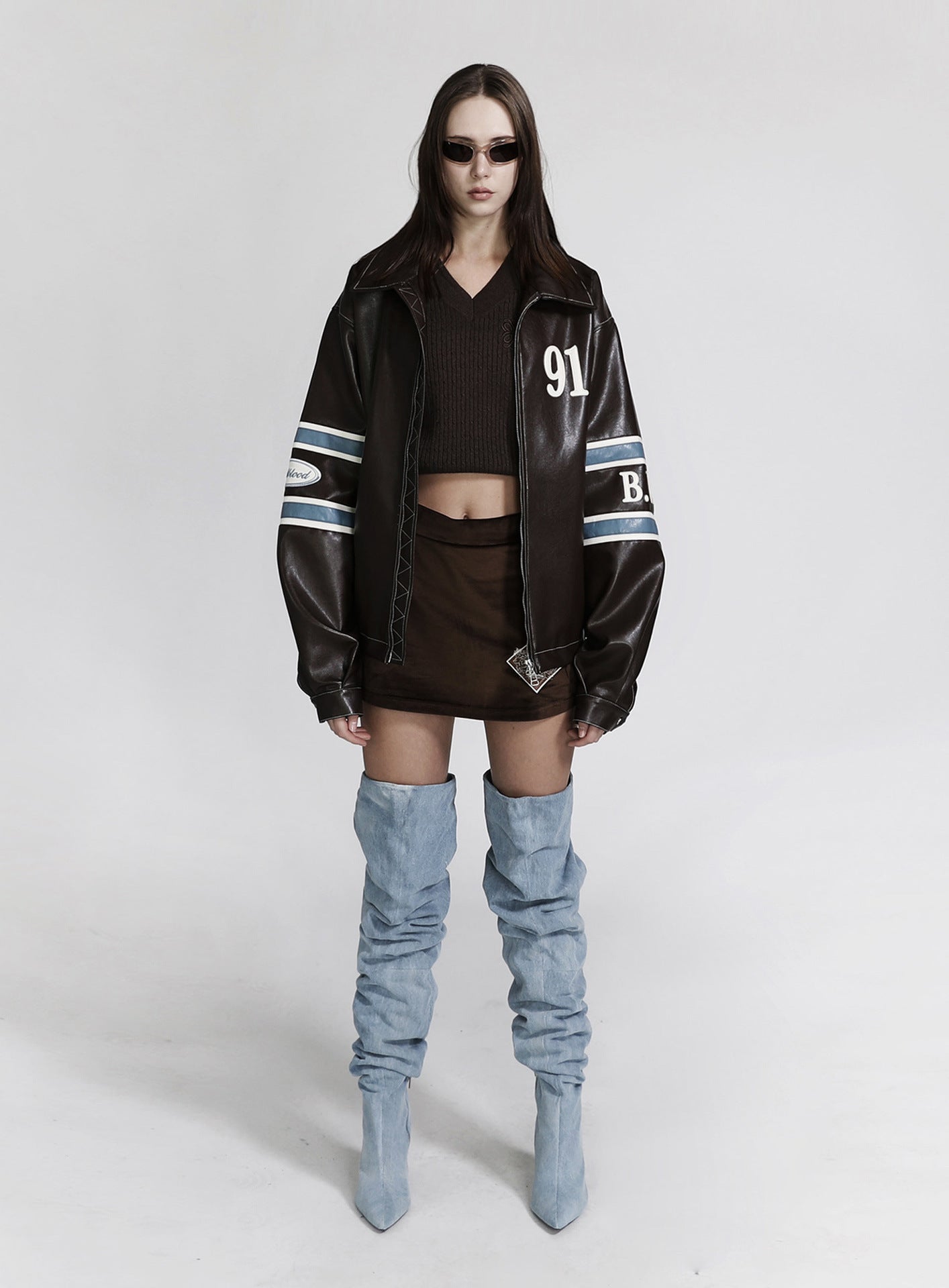 [w-jkt22-033] 91 皮革棒球夹克 - 棕色