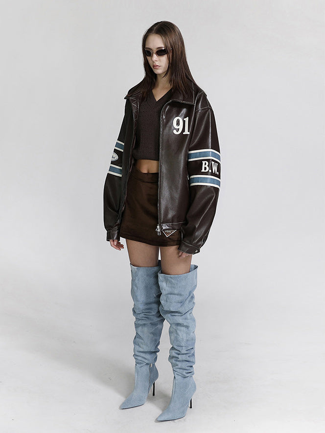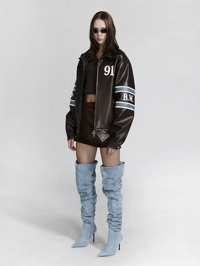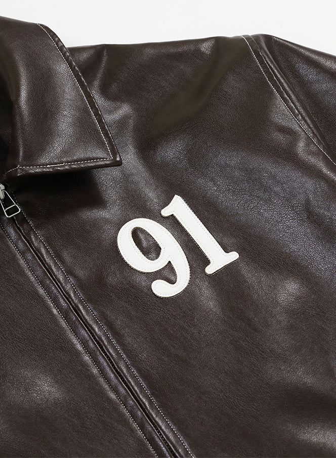 [w-jkt22-033] 91 皮革棒球夹克 - 棕色