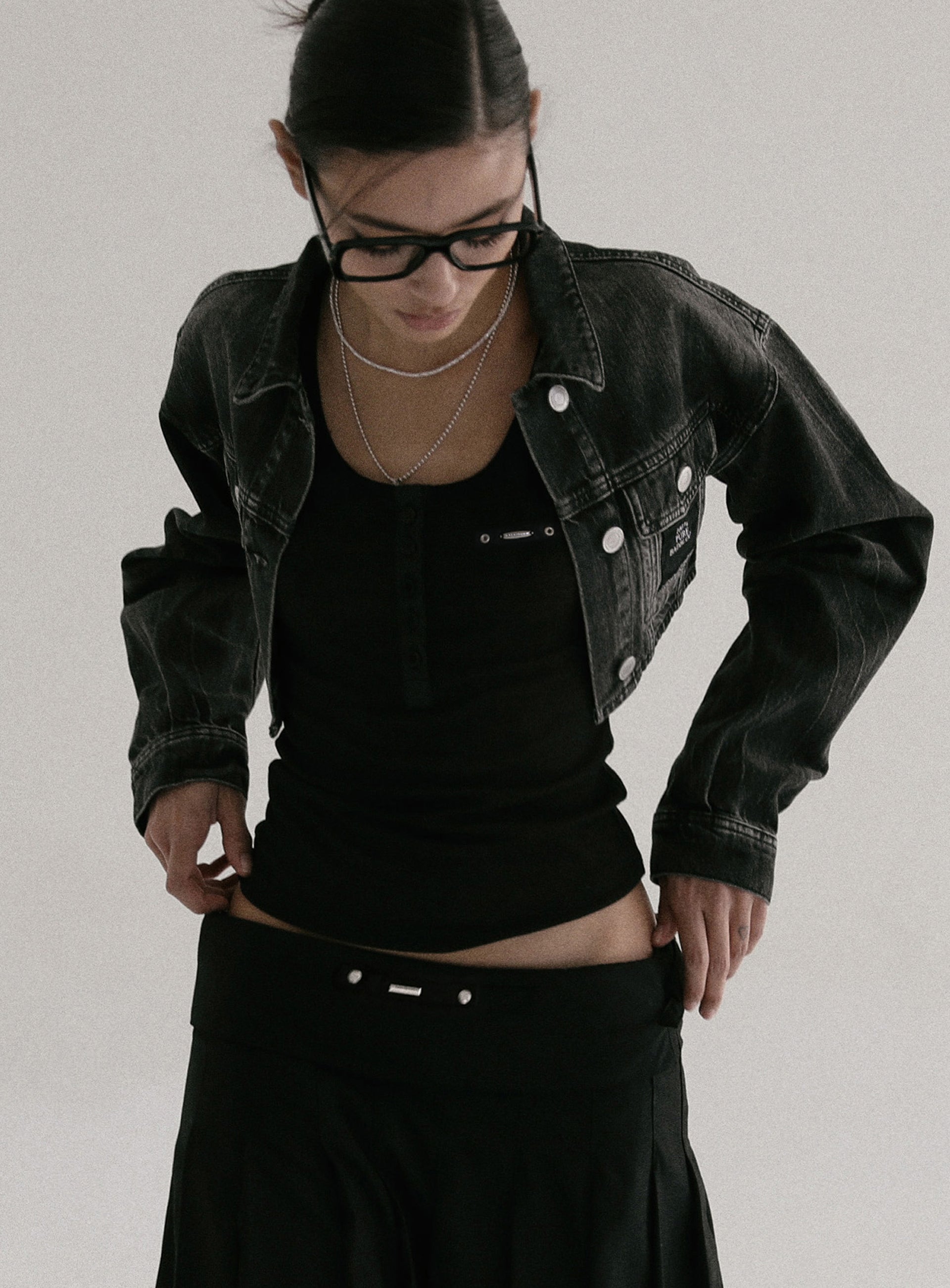 [w-jkt23-037] 超短款牛仔卡车司机夹克 - 黑色