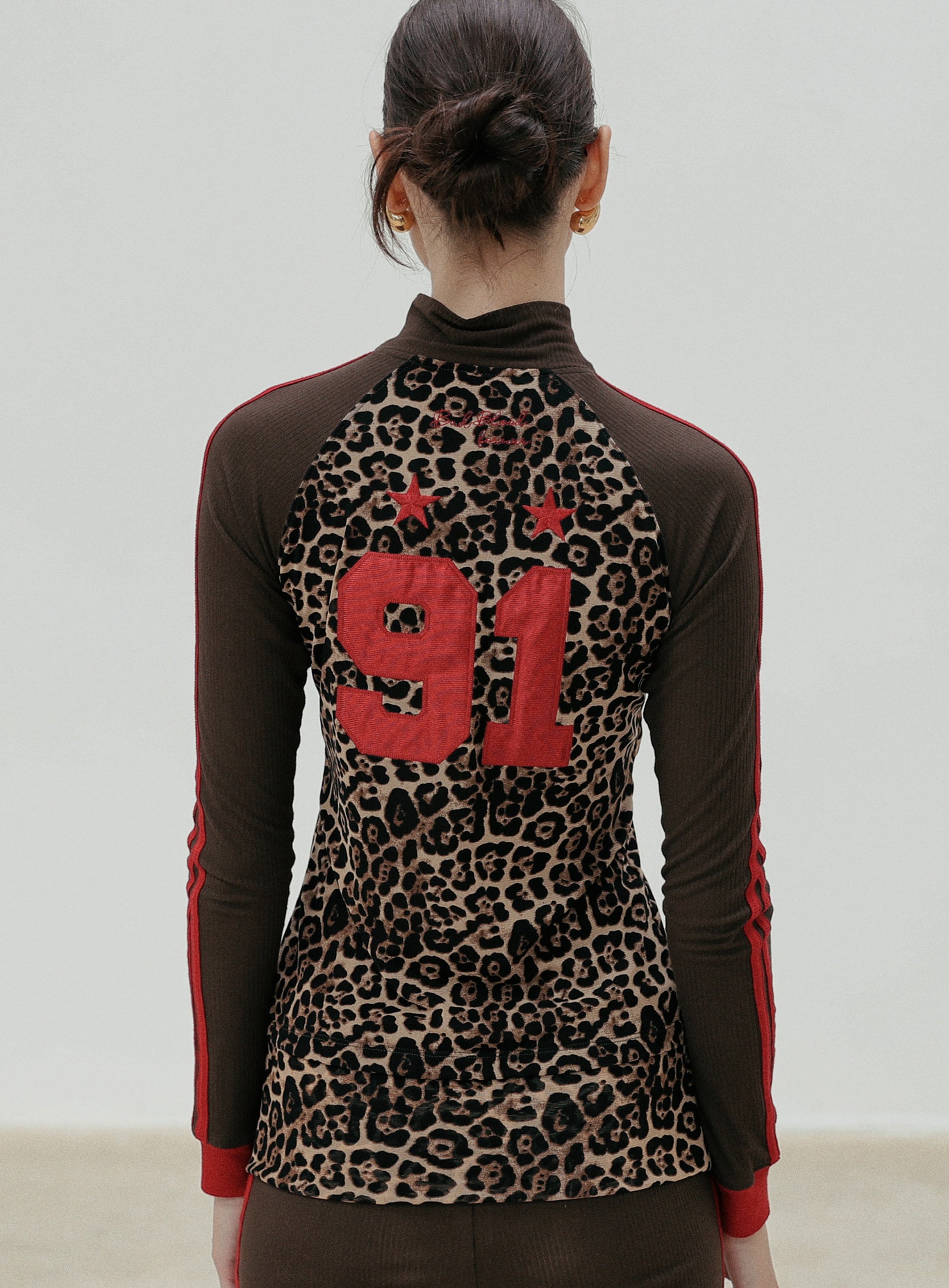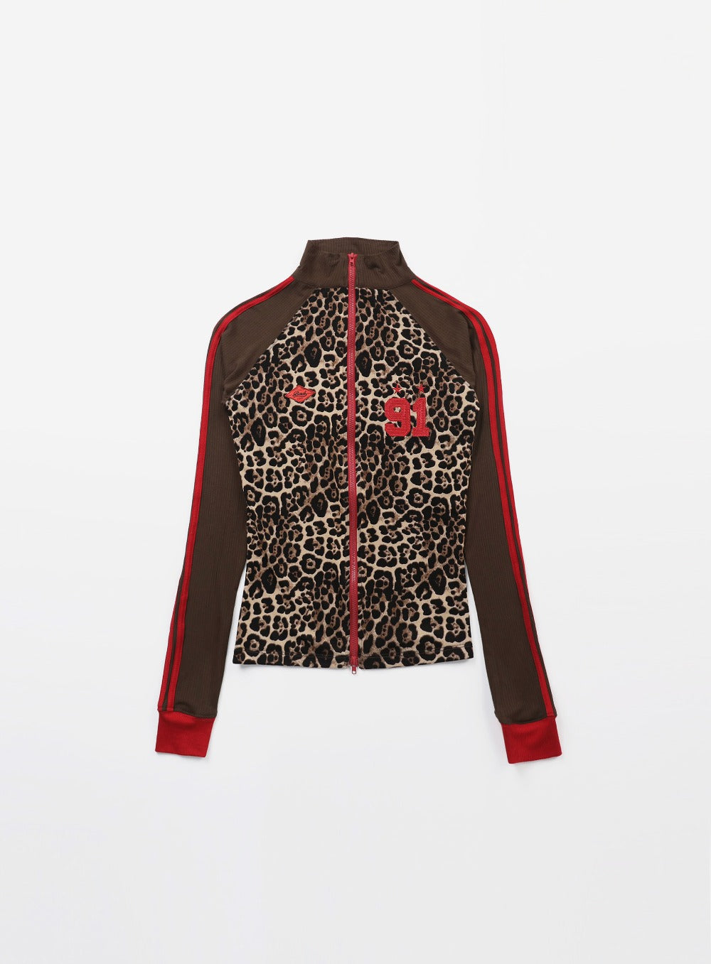 [w-jkt24-021] 平纹针织运动上衣 - 豹纹