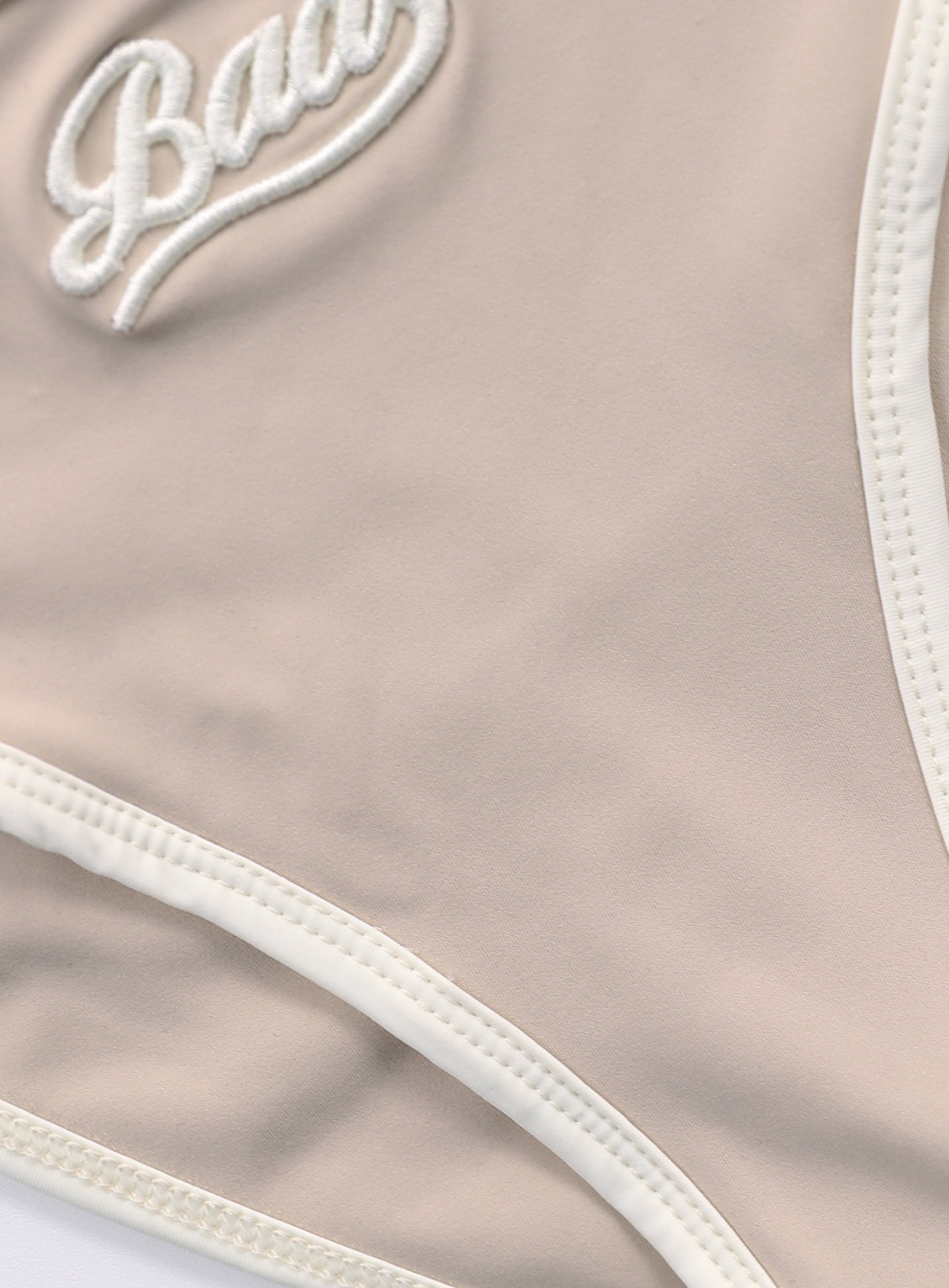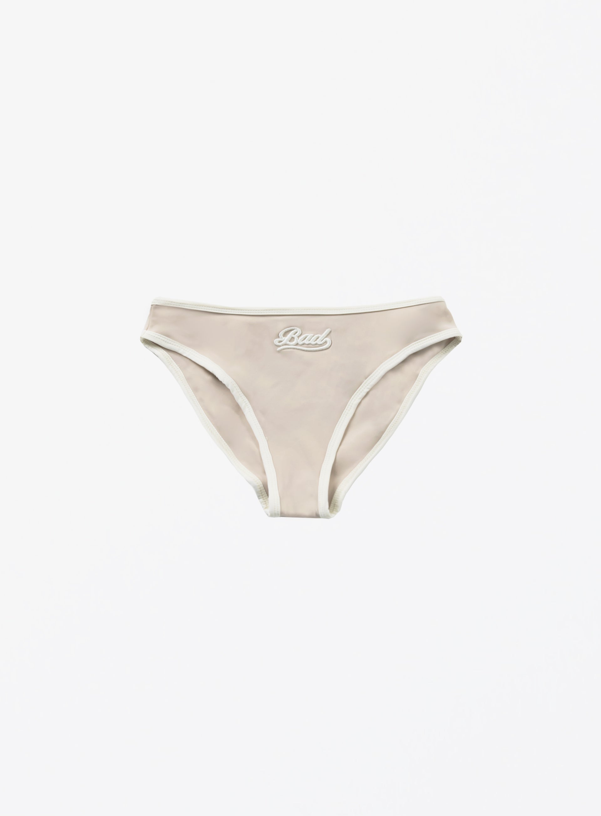 运动感设计与复古配色的Wendy内裤,采用高弹性和韧性的聚酰胺与氨纶混纺材料,贴身舒适。正面有“Bad”标志,背面印有“Badblood Authentic”字样。