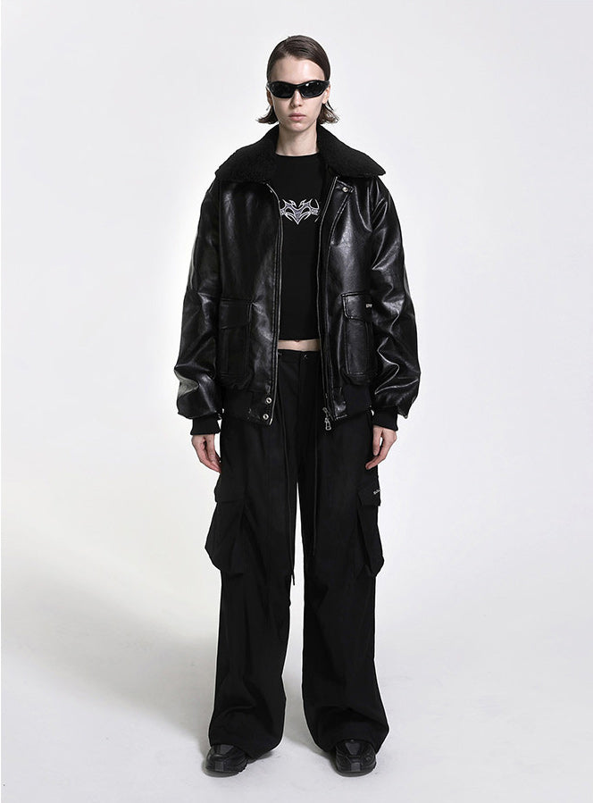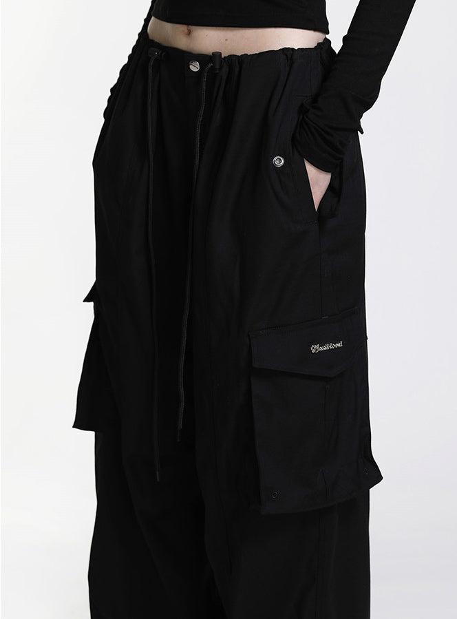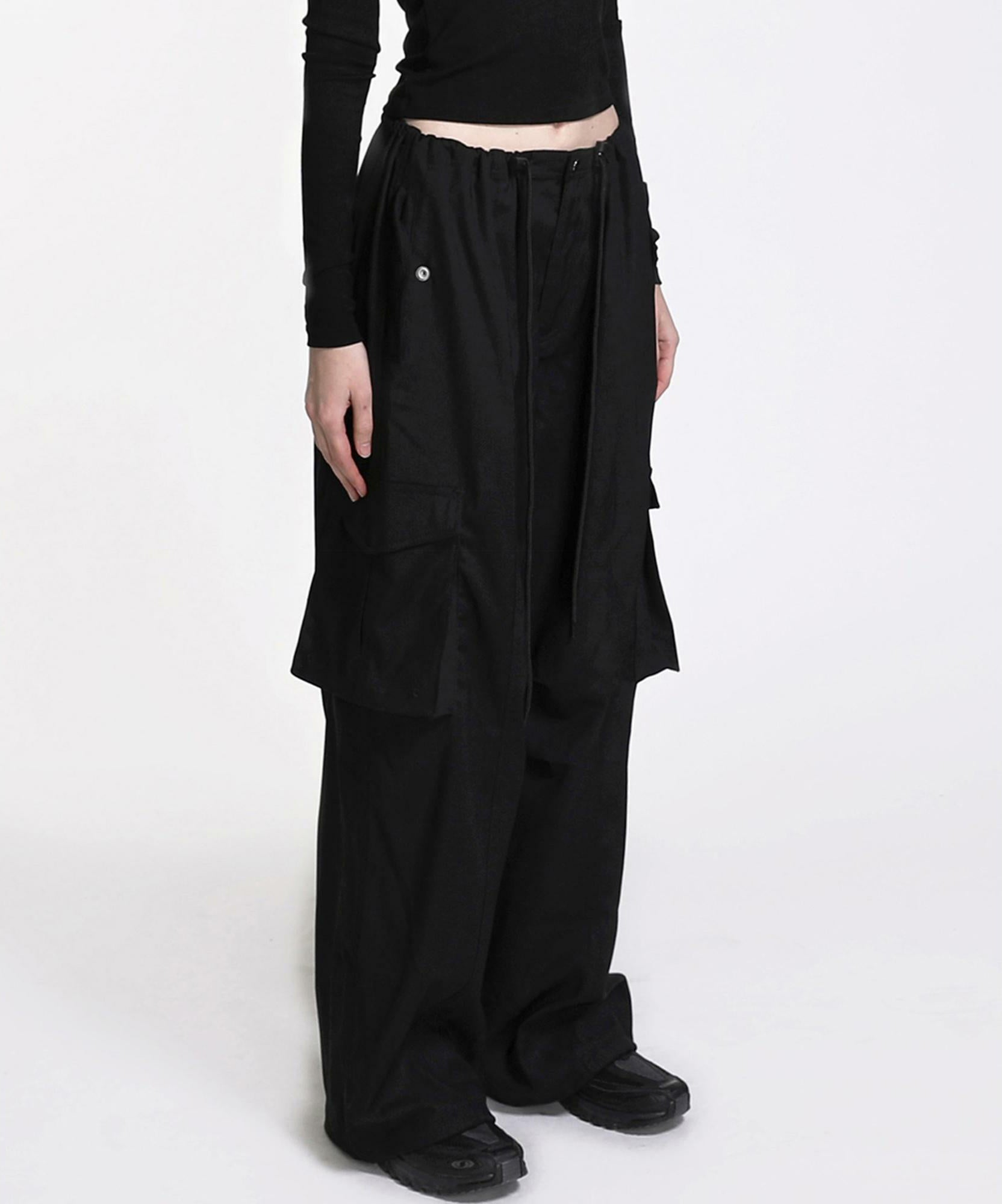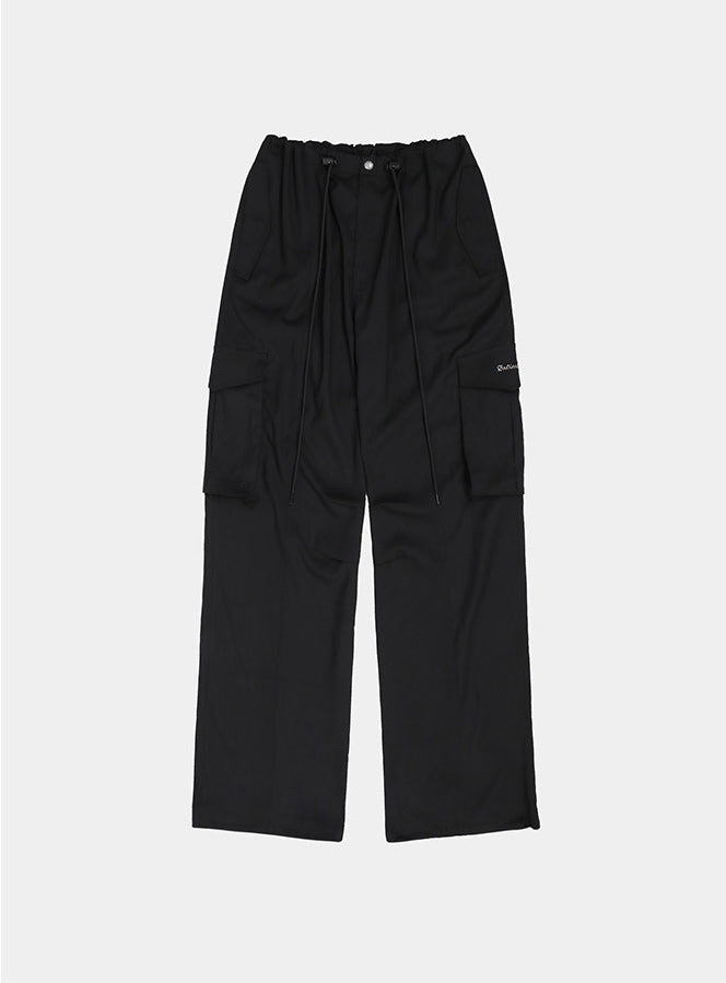 [w-pts22-043]简约标志羊毛华达呢工装裤 - 黑色