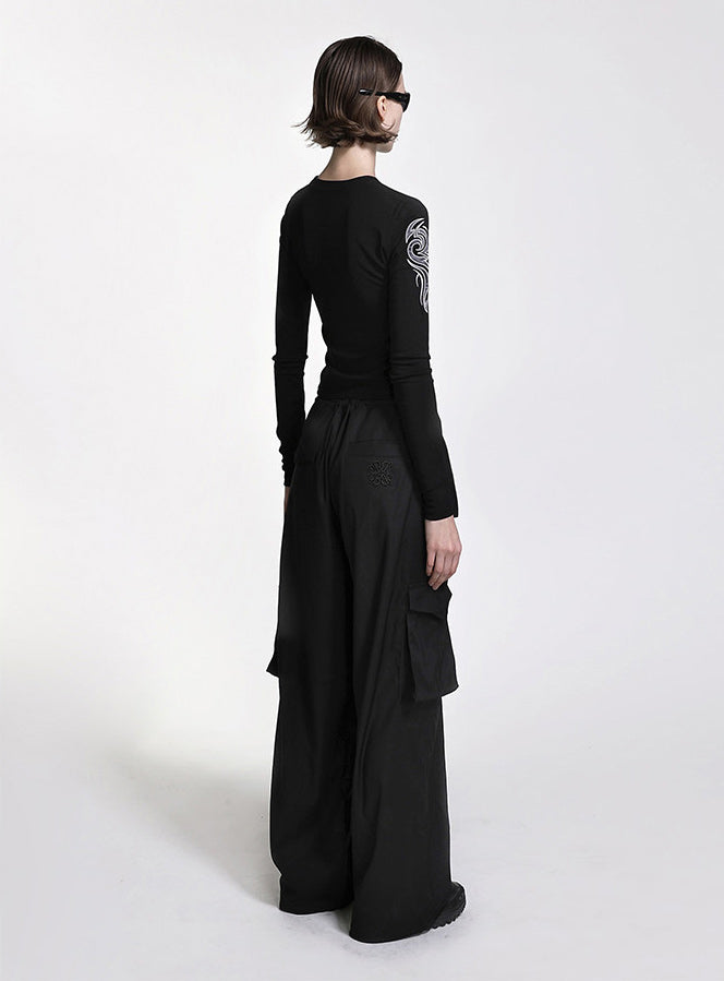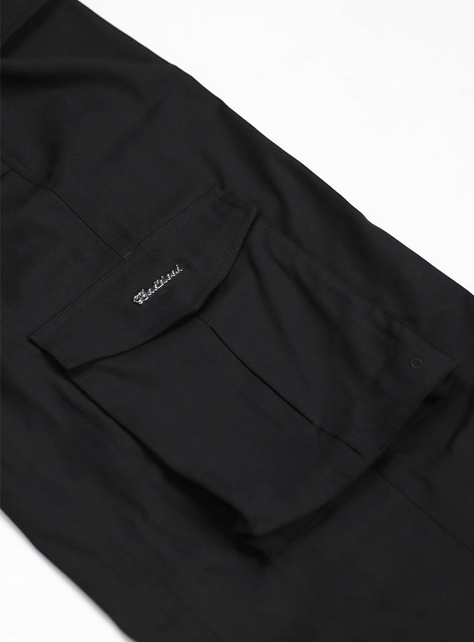 [w-pts22-043]简约标志羊毛华达呢工装裤 - 黑色