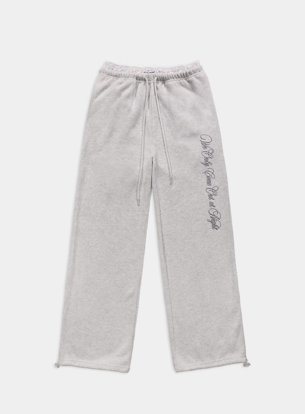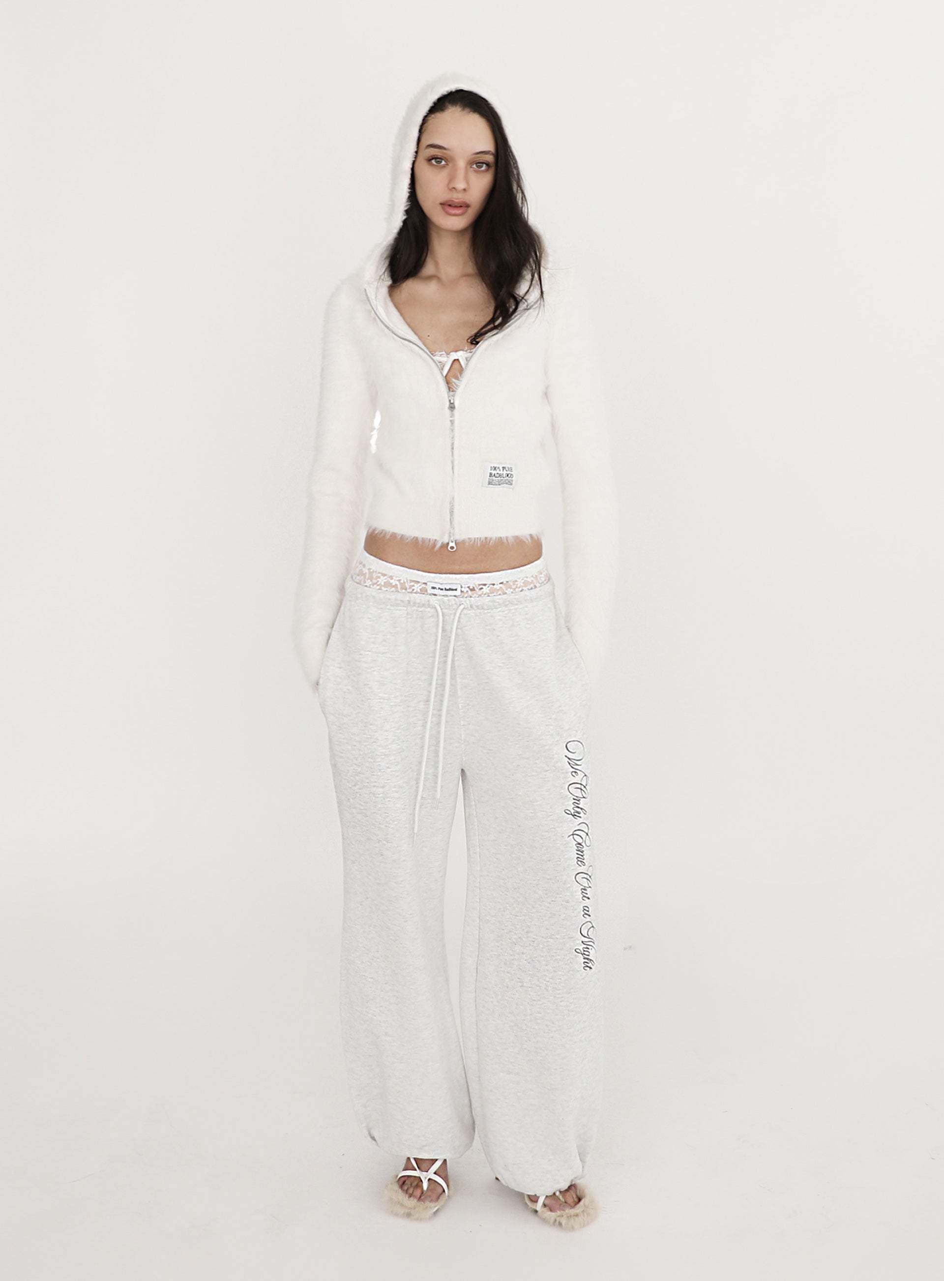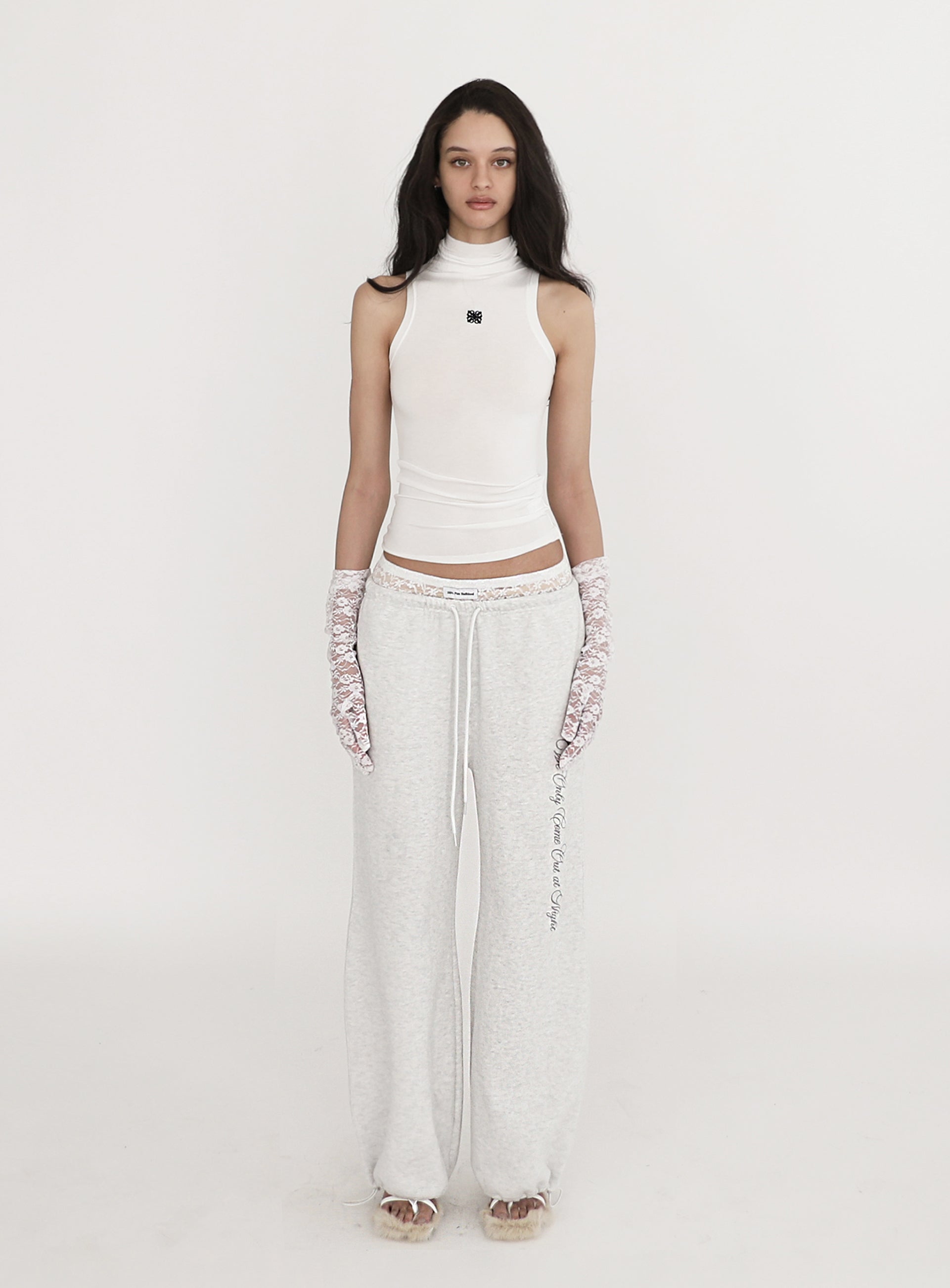 [w-pts23-056] 纯蕾丝边慢跑裤 - 灰色