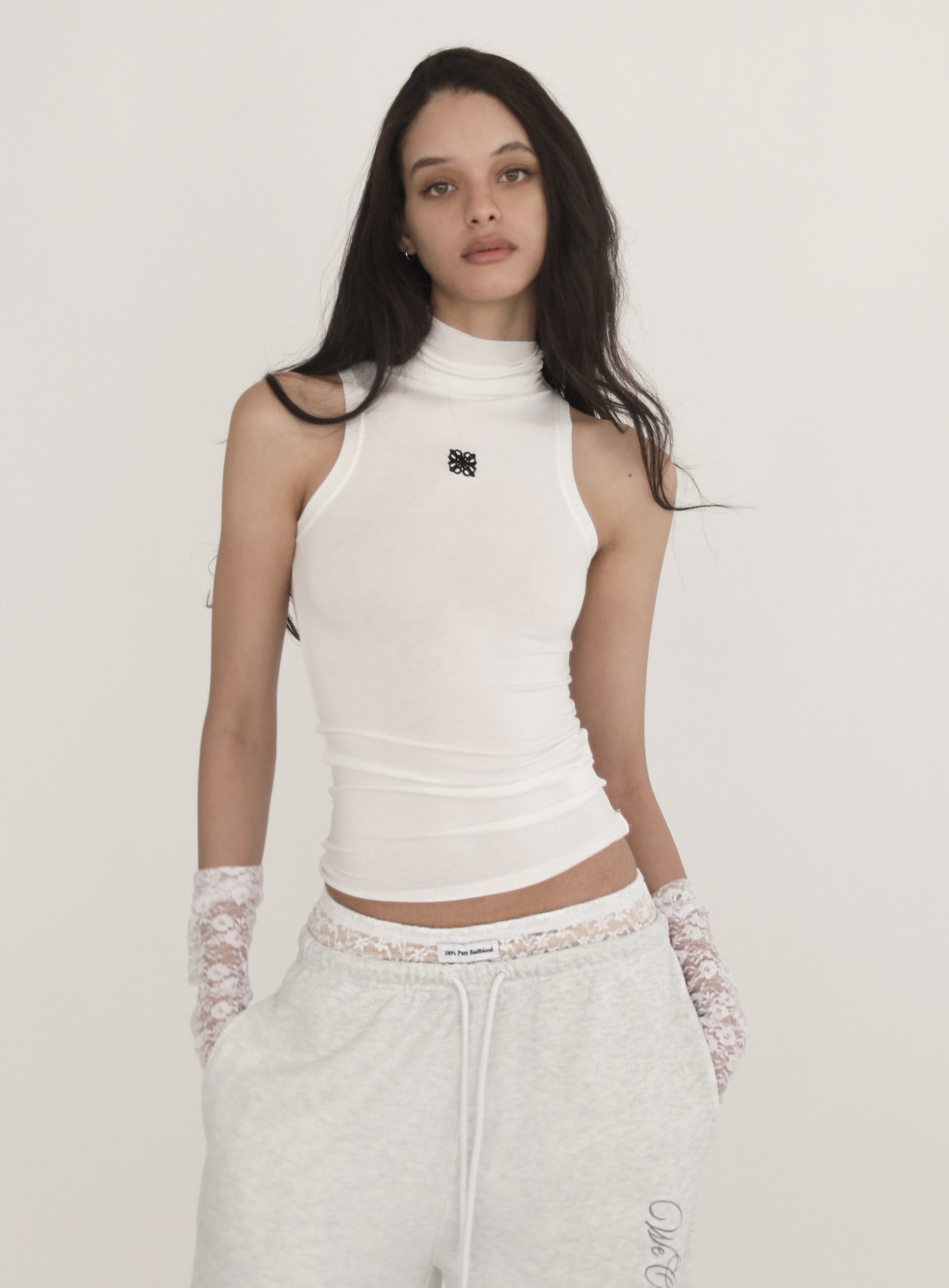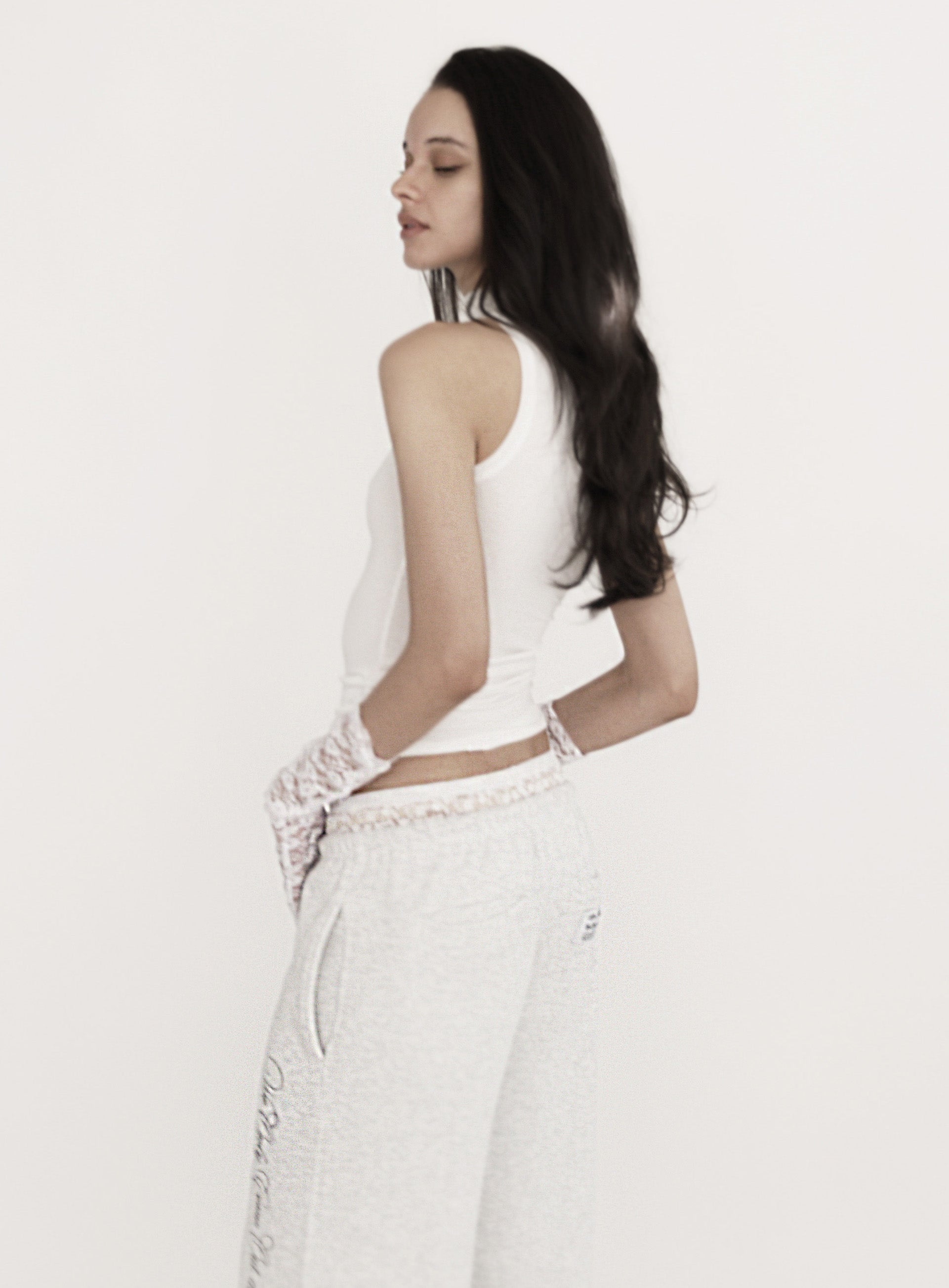 这款低腰慢跑裤采用松紧腰设计,搭配女性化的蕾丝细节。