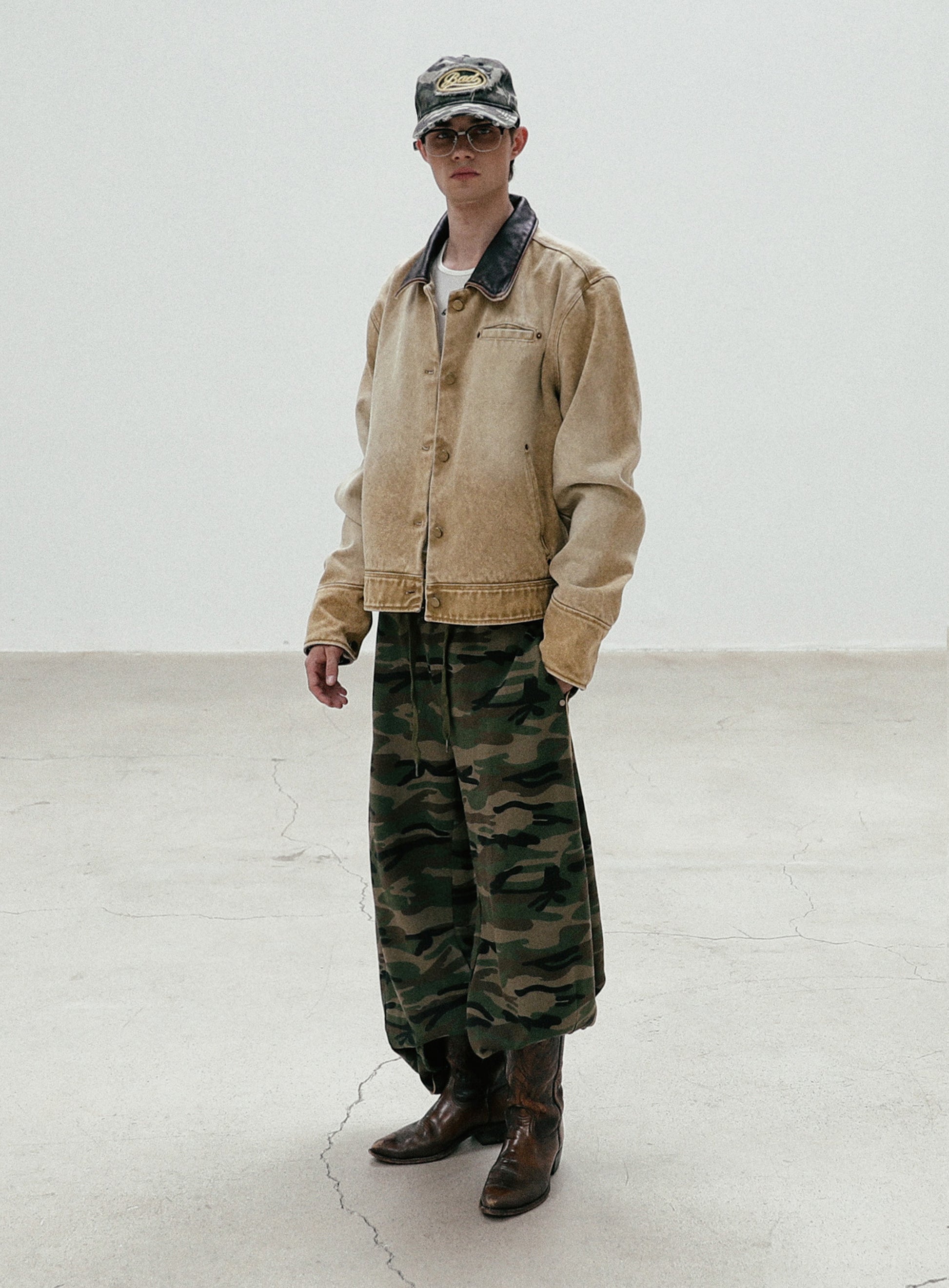 [w-pts24-047] 迷彩 2 Way 弧形慢跑裤 - 军装