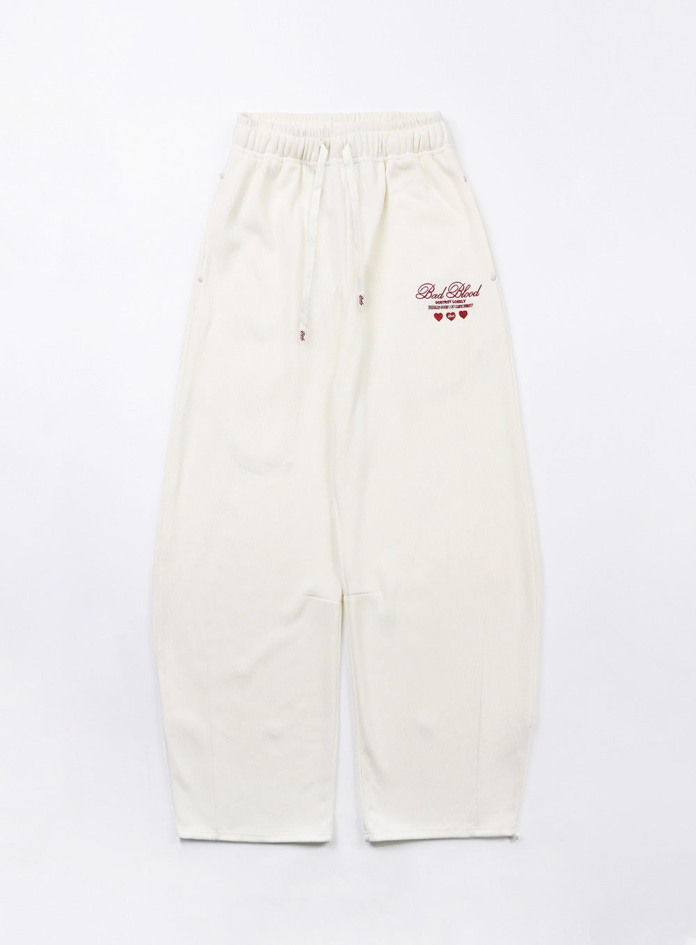 [w-pts24-048] 经典徽标 2 Way 弧形慢跑裤 - 奶油白