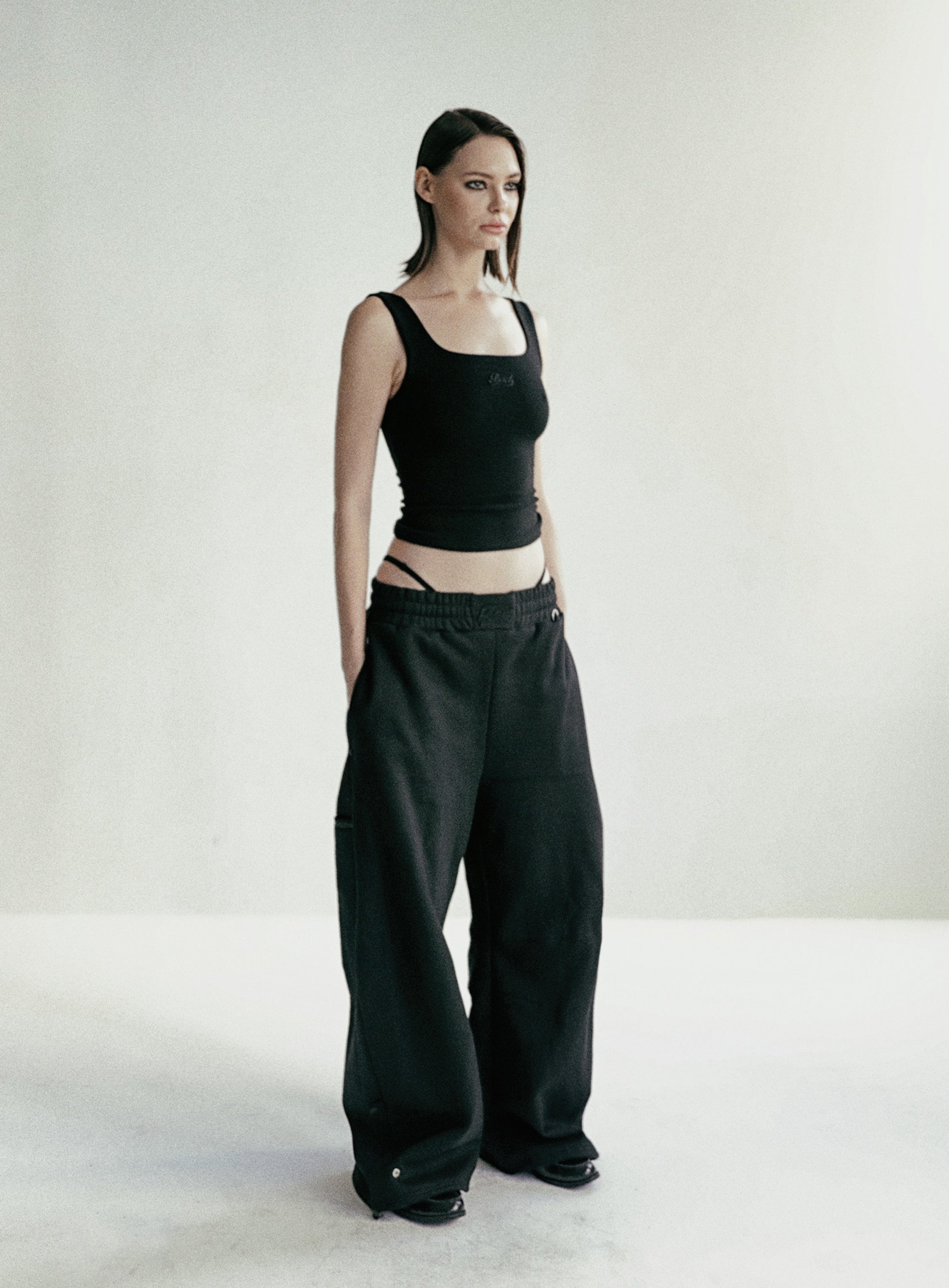 [w-pts24-080] Beyond 柔软抓绒慢跑裤 - 黑色