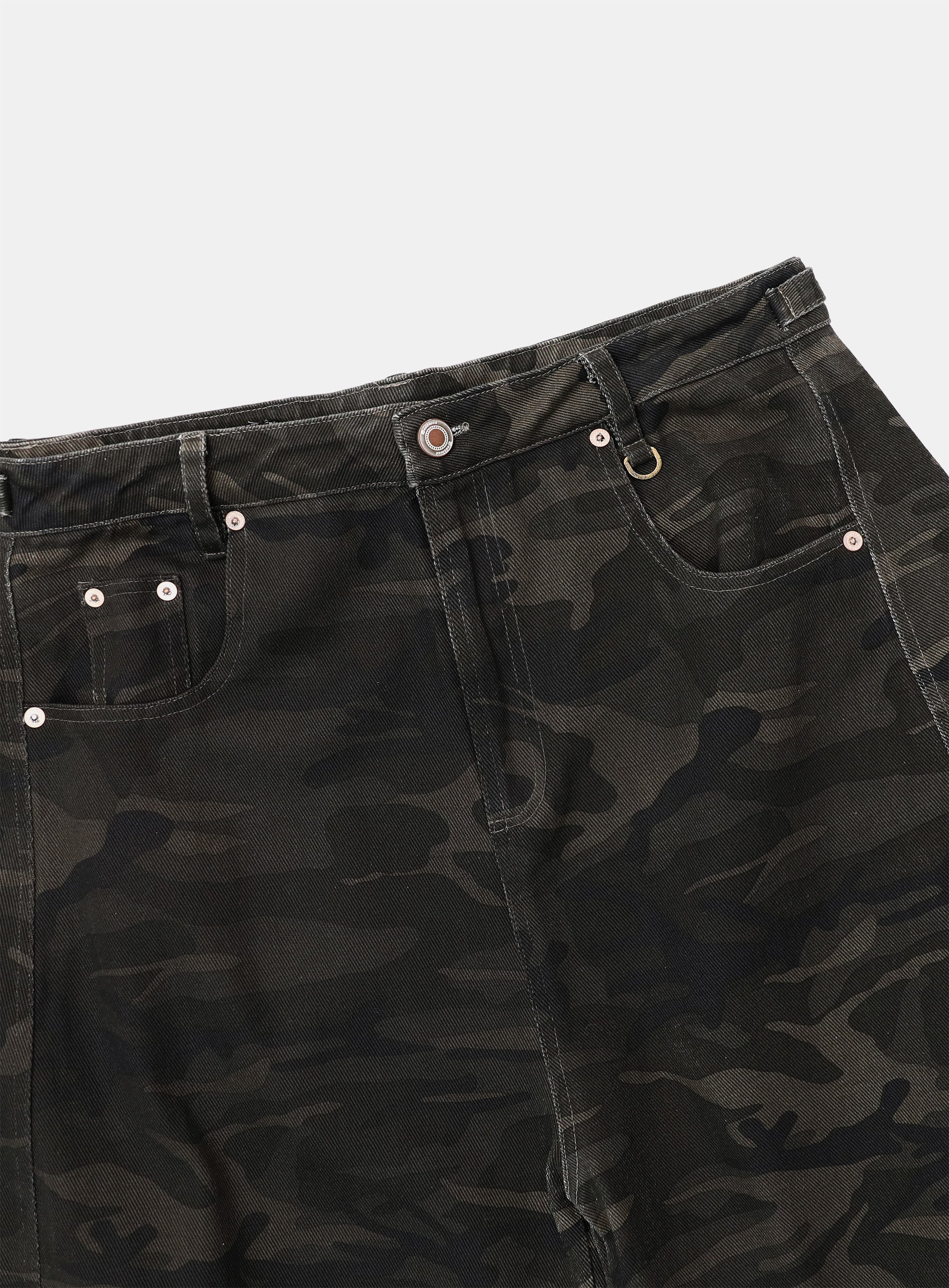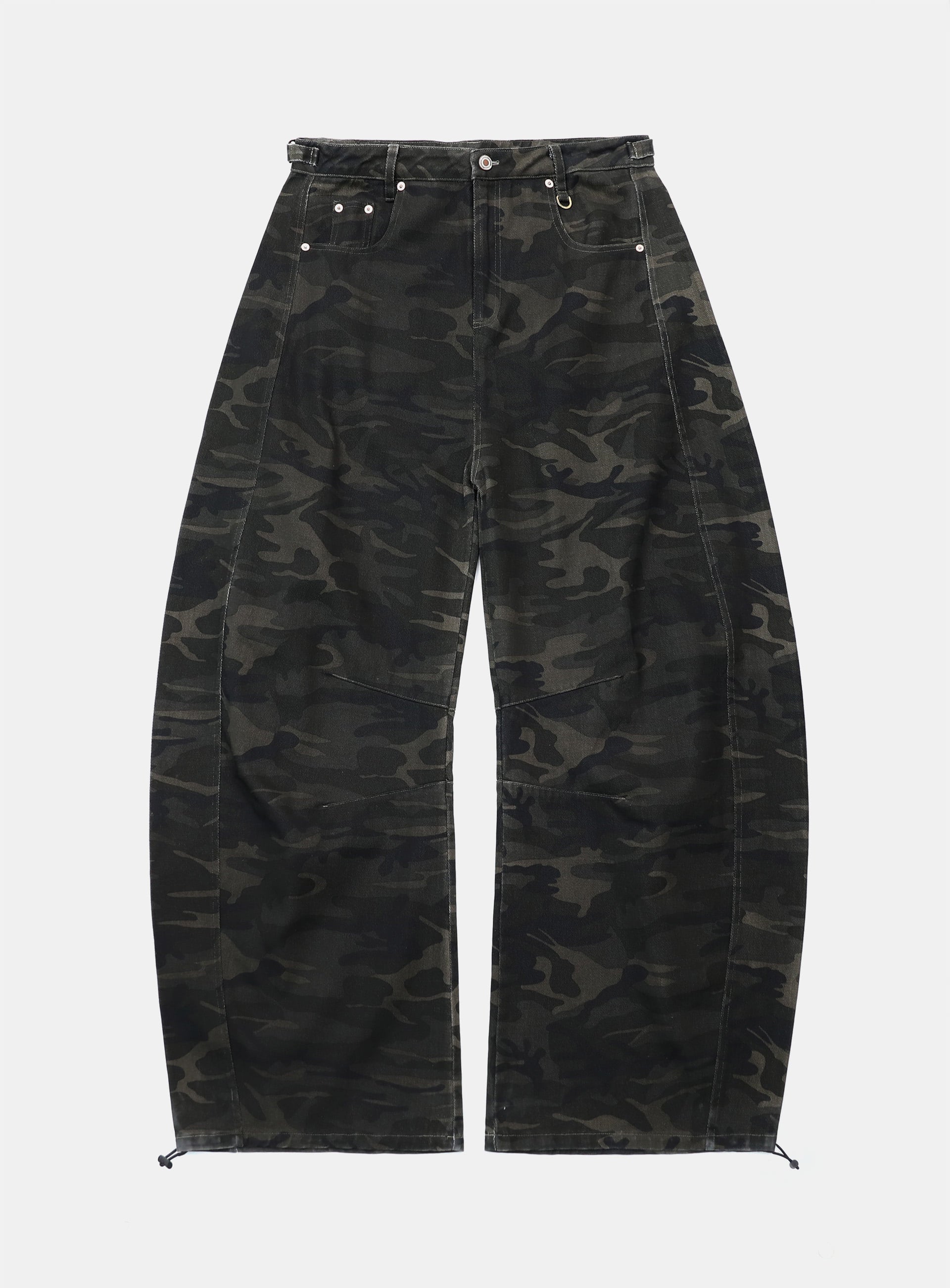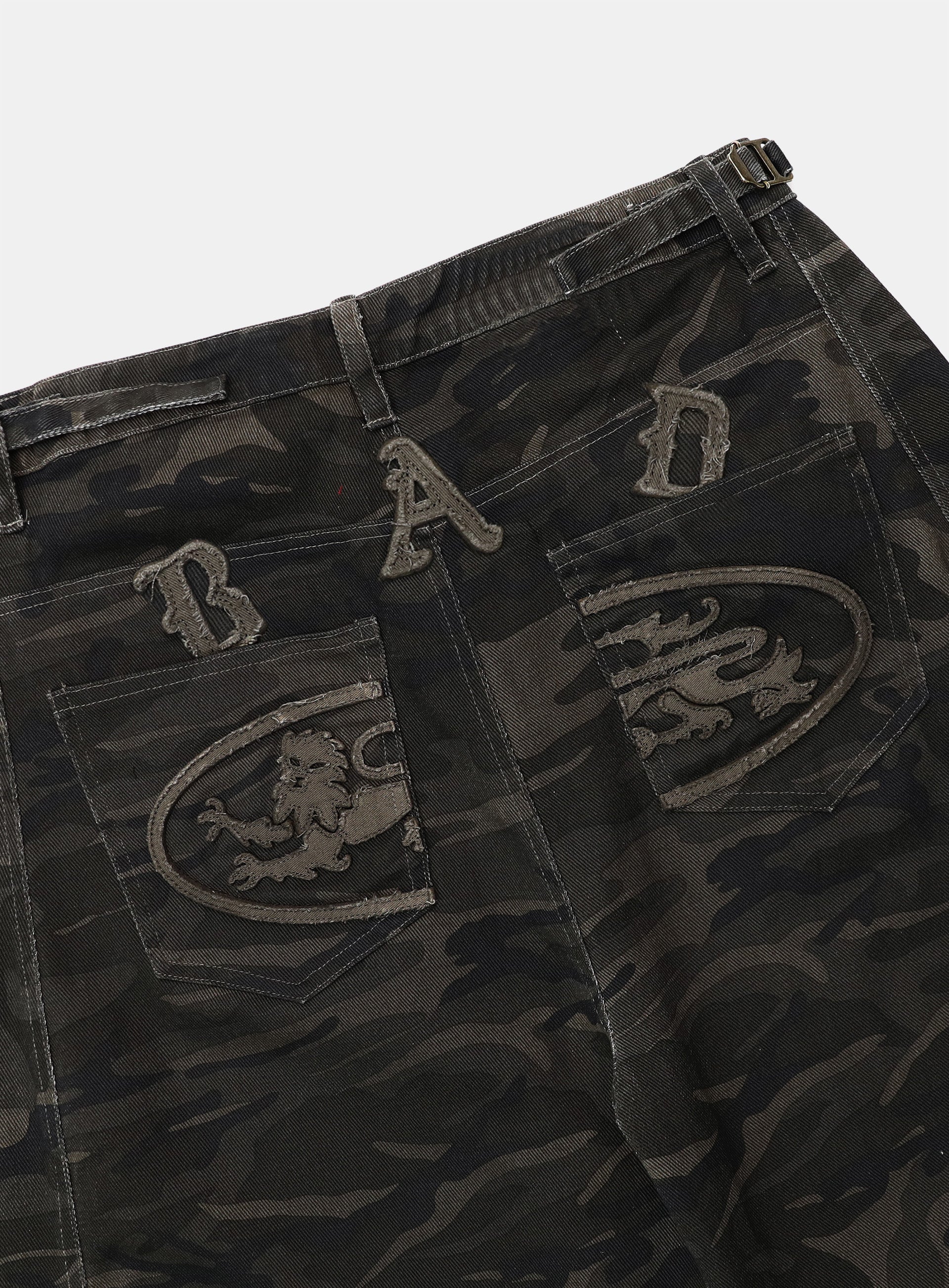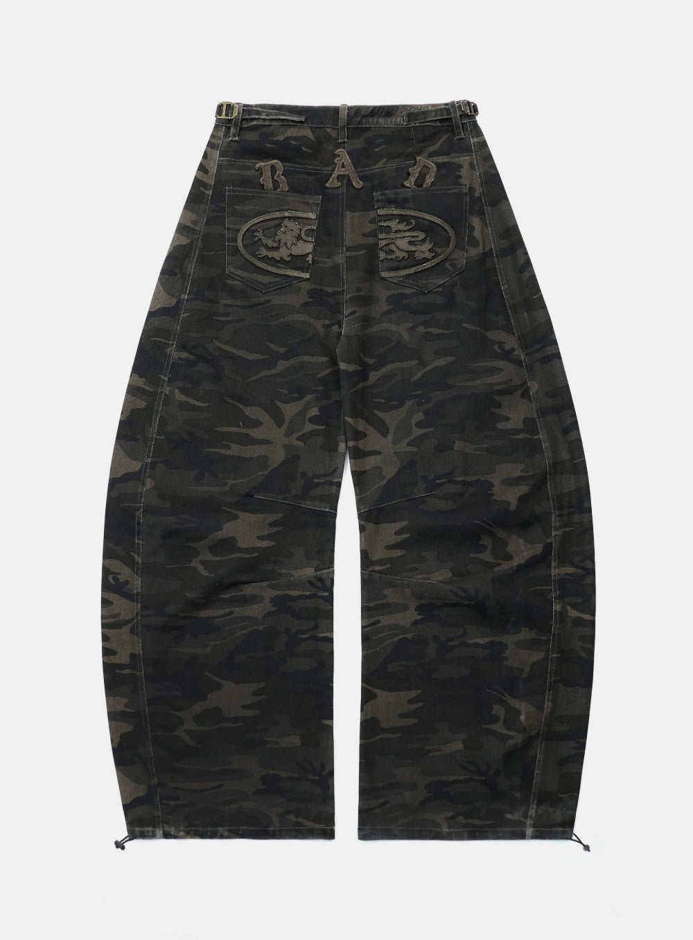 迷彩水洗棉材质,打造街头感十足的狮子补丁工装桶裤。