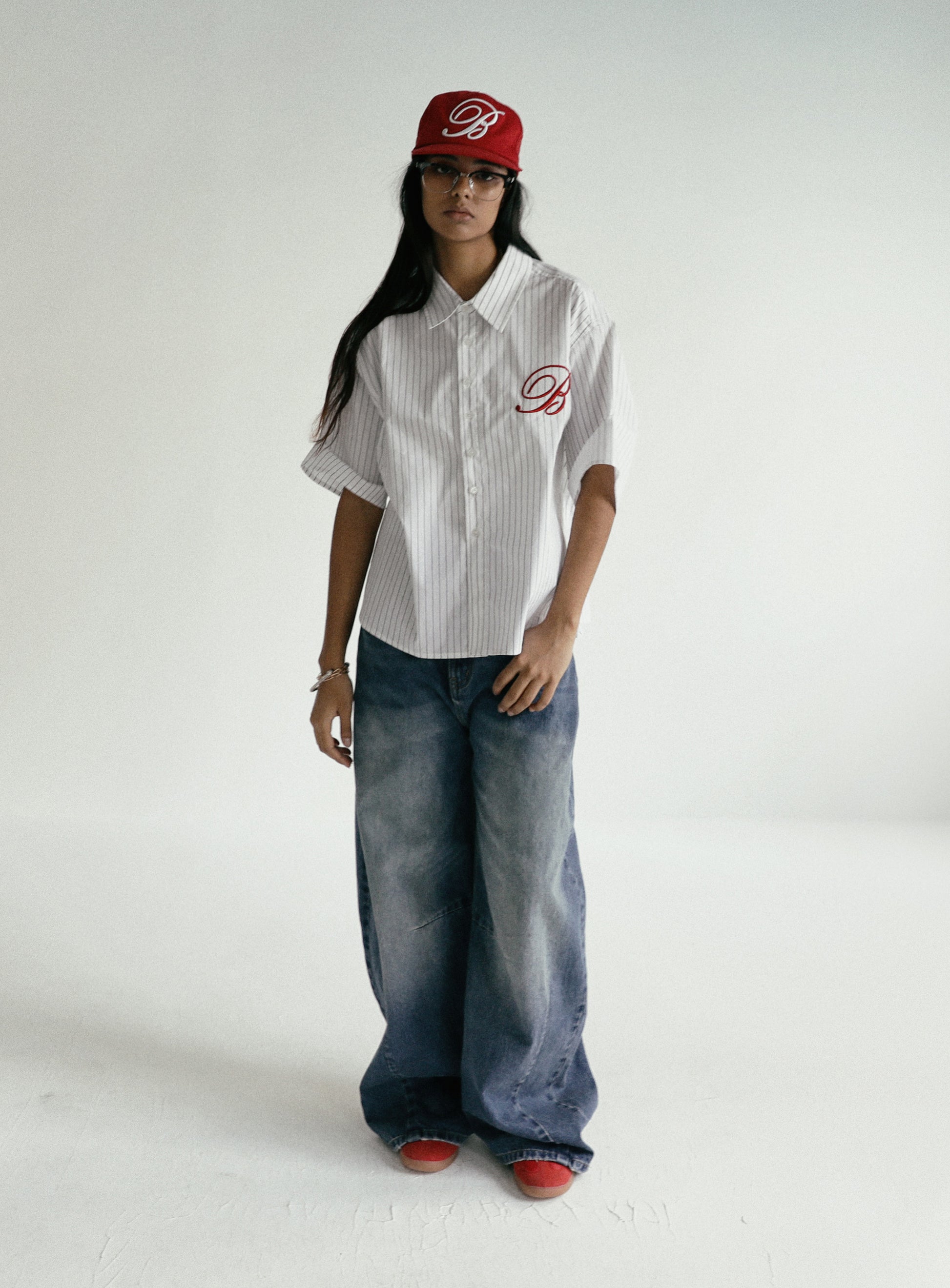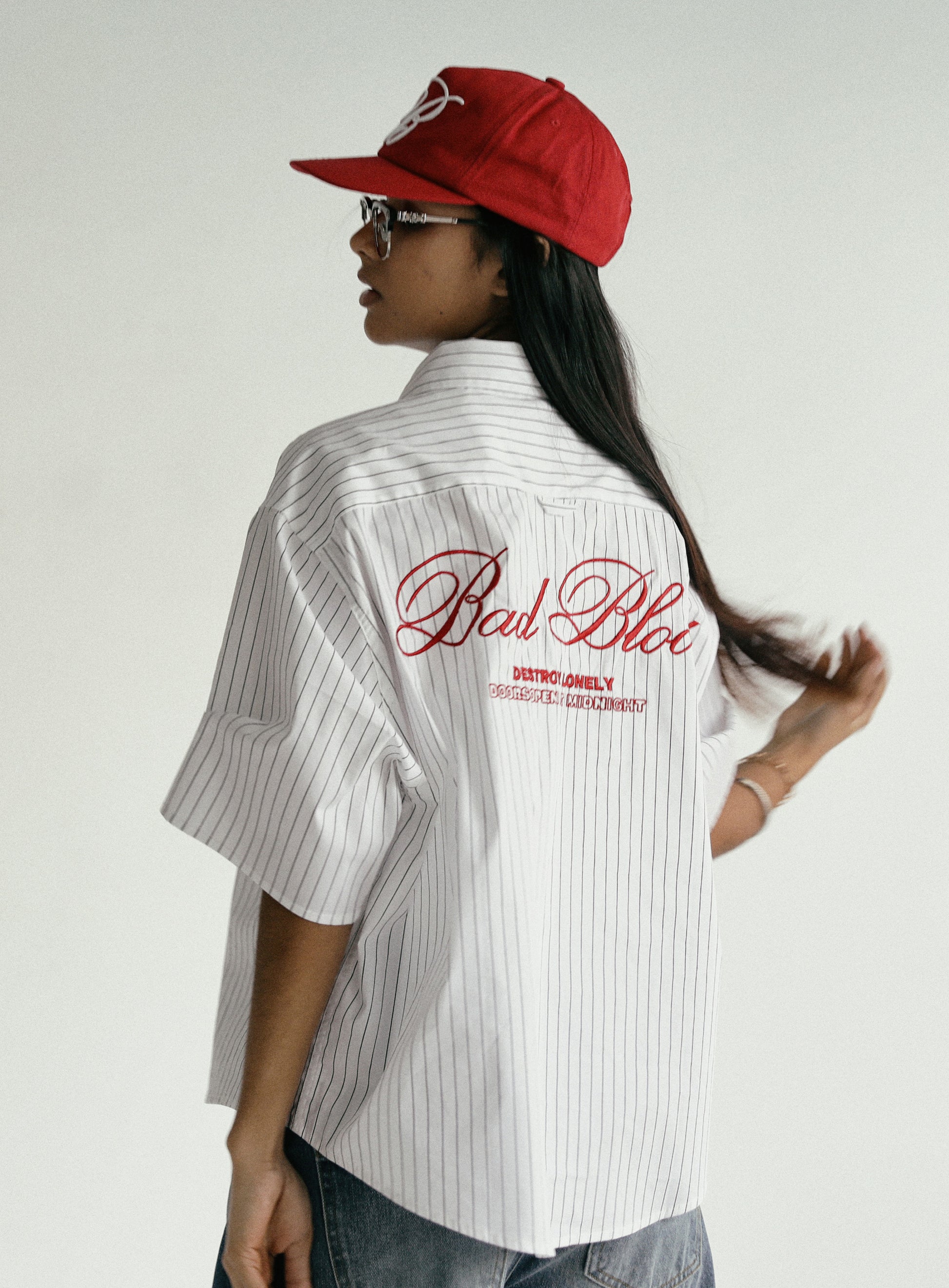 这款经典logo短袖衬衫采用柔软的棉和聚酯混合面料,提供凉爽的穿着感。设计有弯曲的下摆细节,内领口处有隐藏的 Badblood 标签。前面绣有 B 字母的立体刺绣,后面则是 Badblood 的手写刺绣细节。