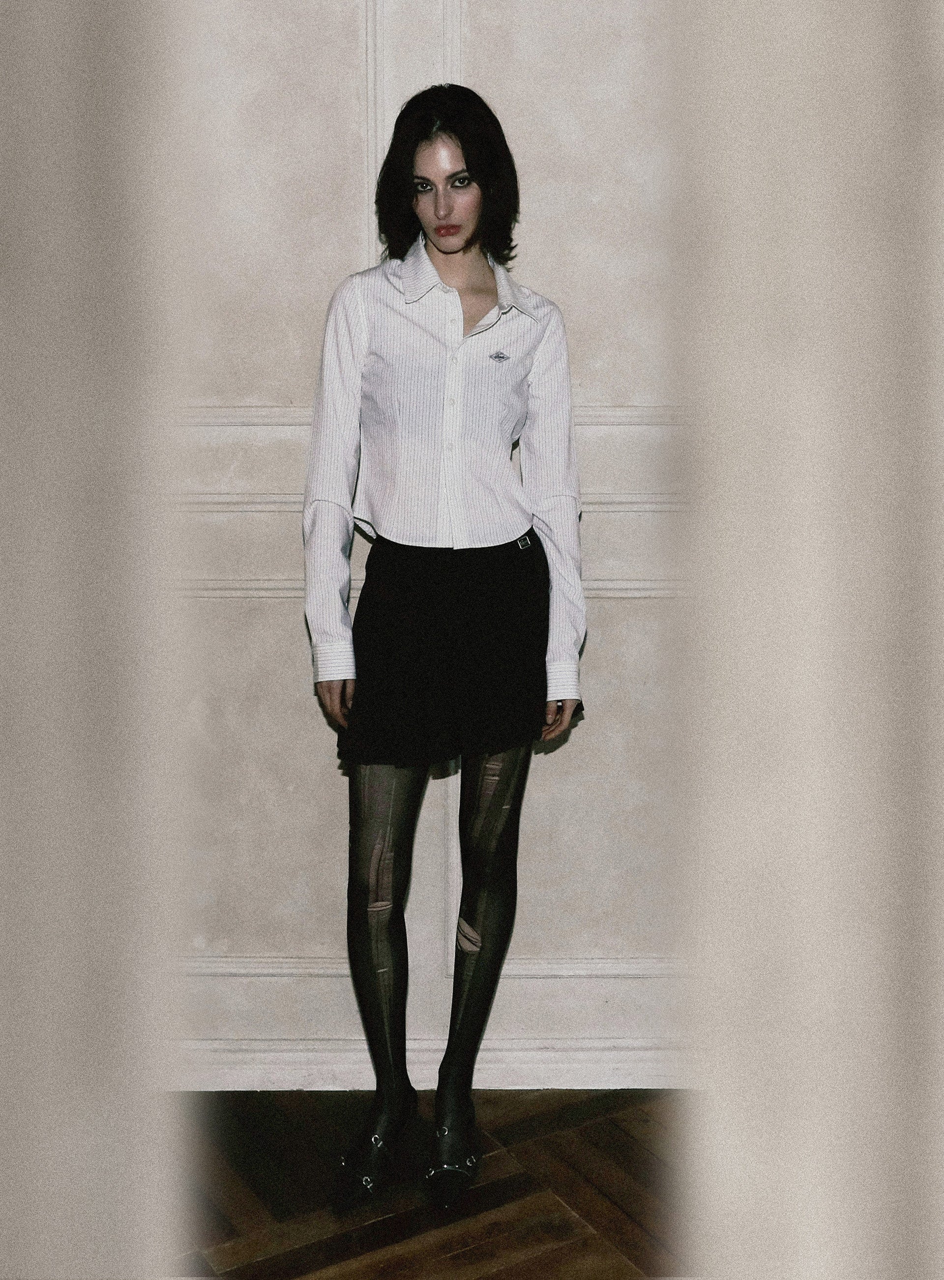 [w-sht25-001] 013 修身版衬衫 - 白色 / 条纹