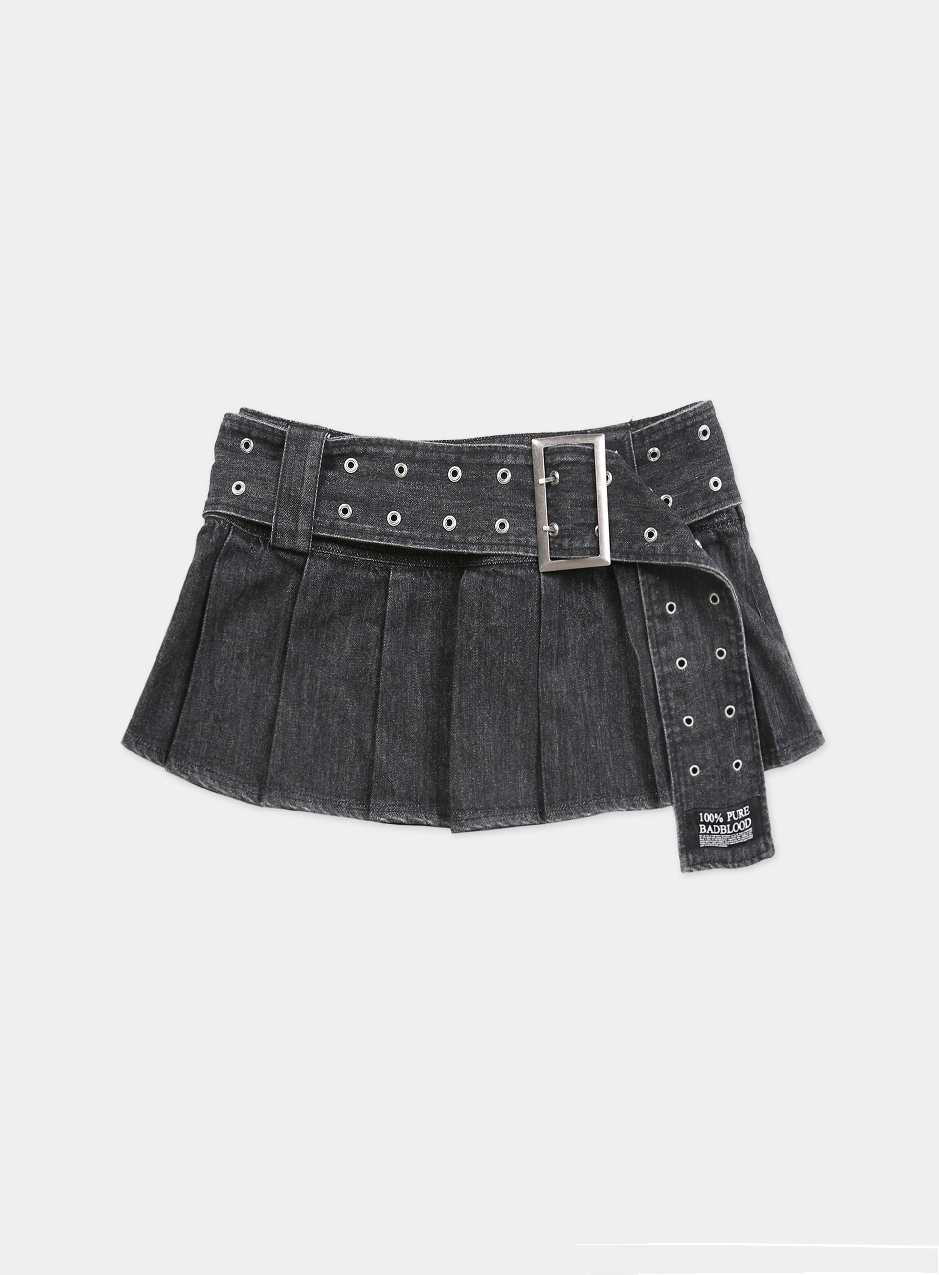 使用日本高级牛仔布制作的褶皱迷你裙。