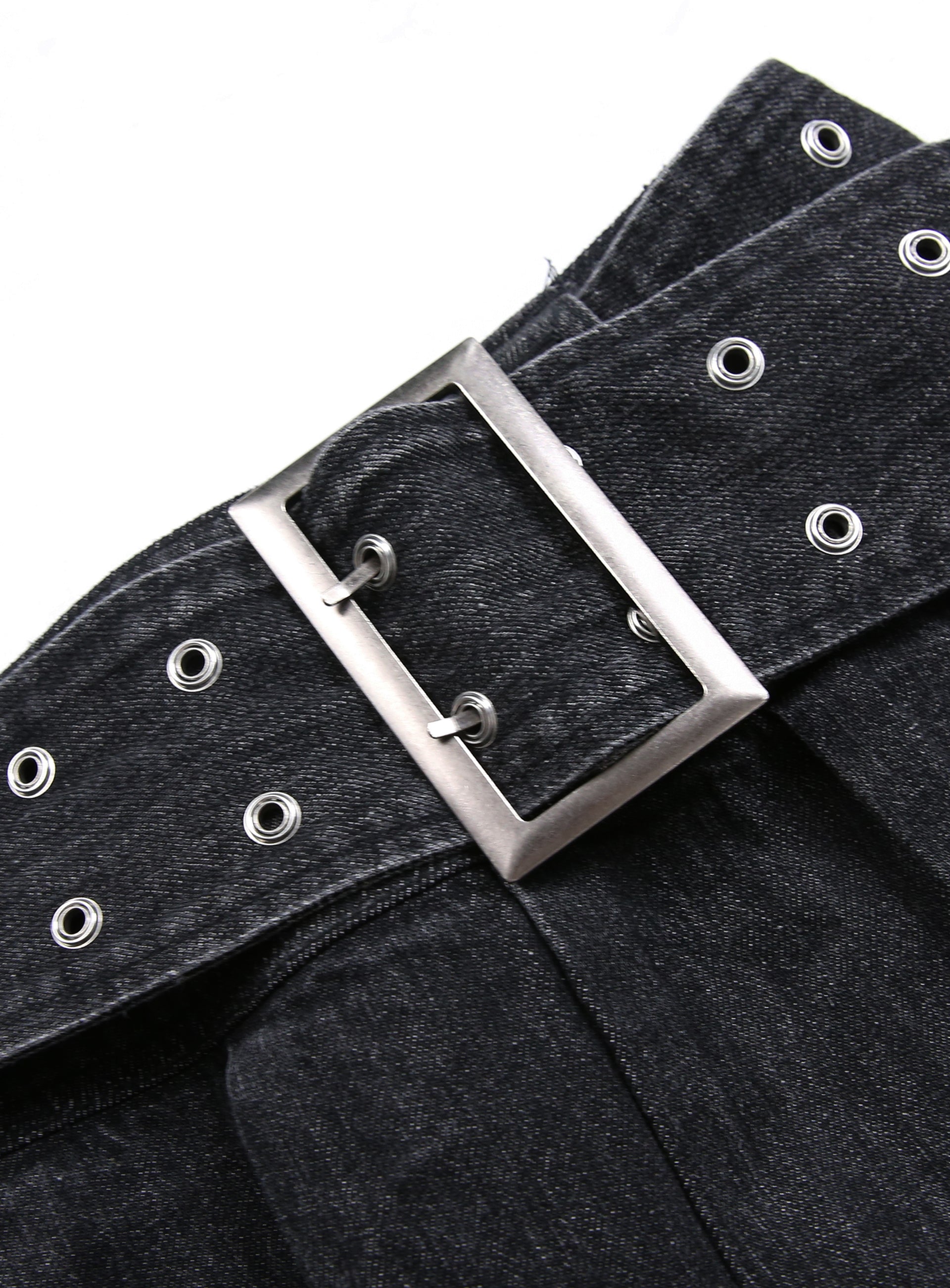[w-skt23-022] 牛仔迷你裙 - 黑色
