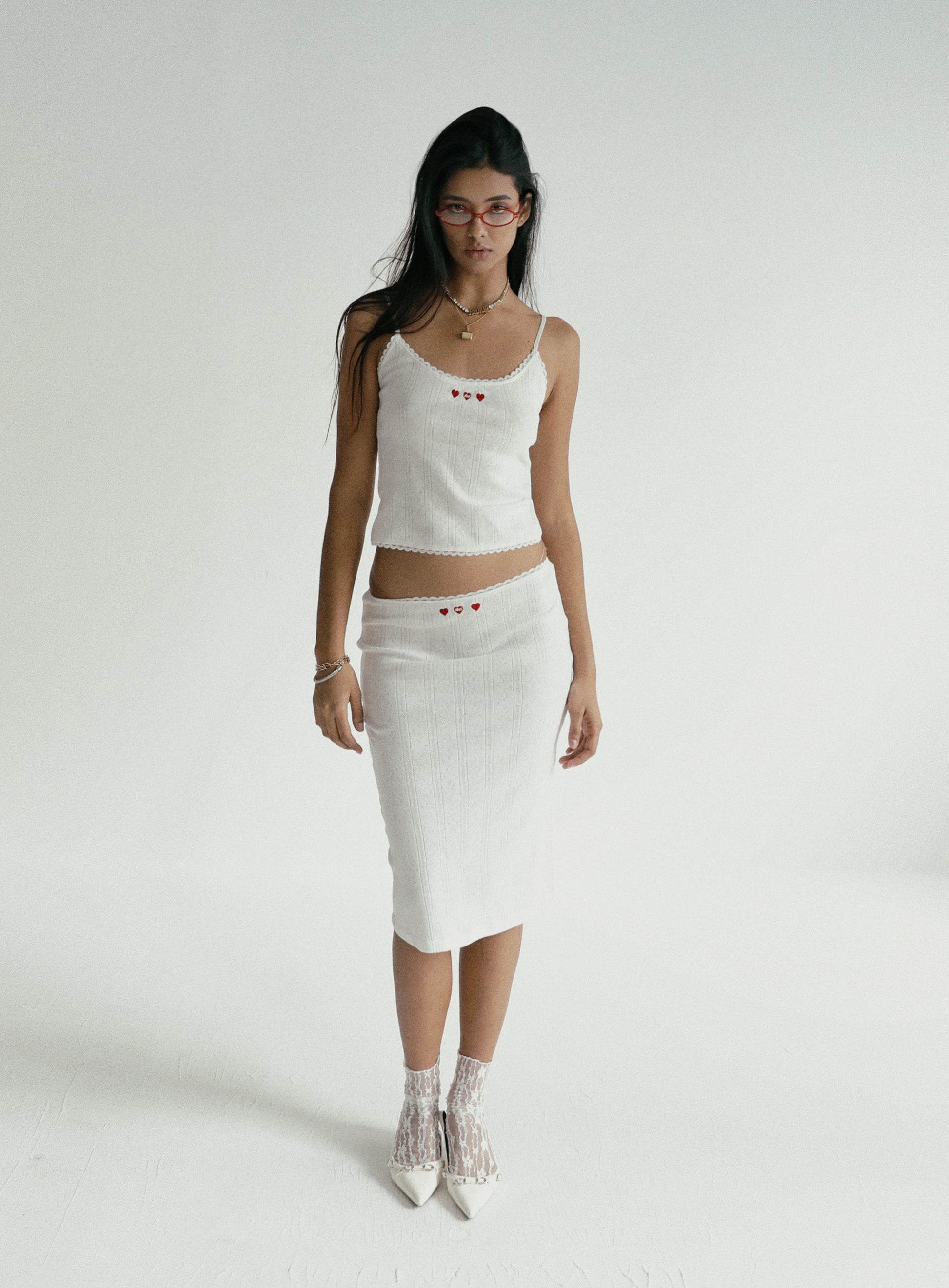 [w-skt24-029] 经典徽标尖头中长半身裙 - 白色