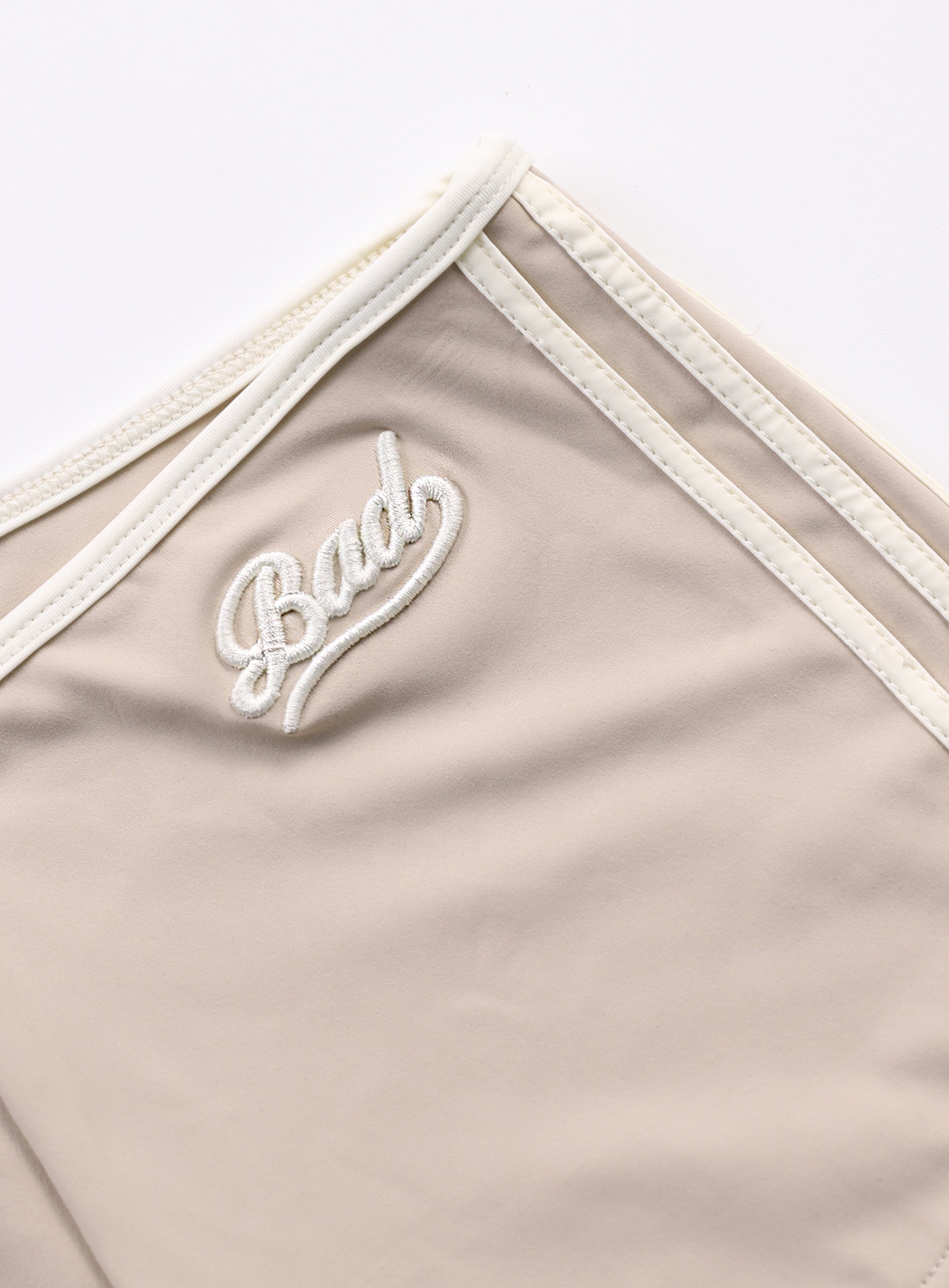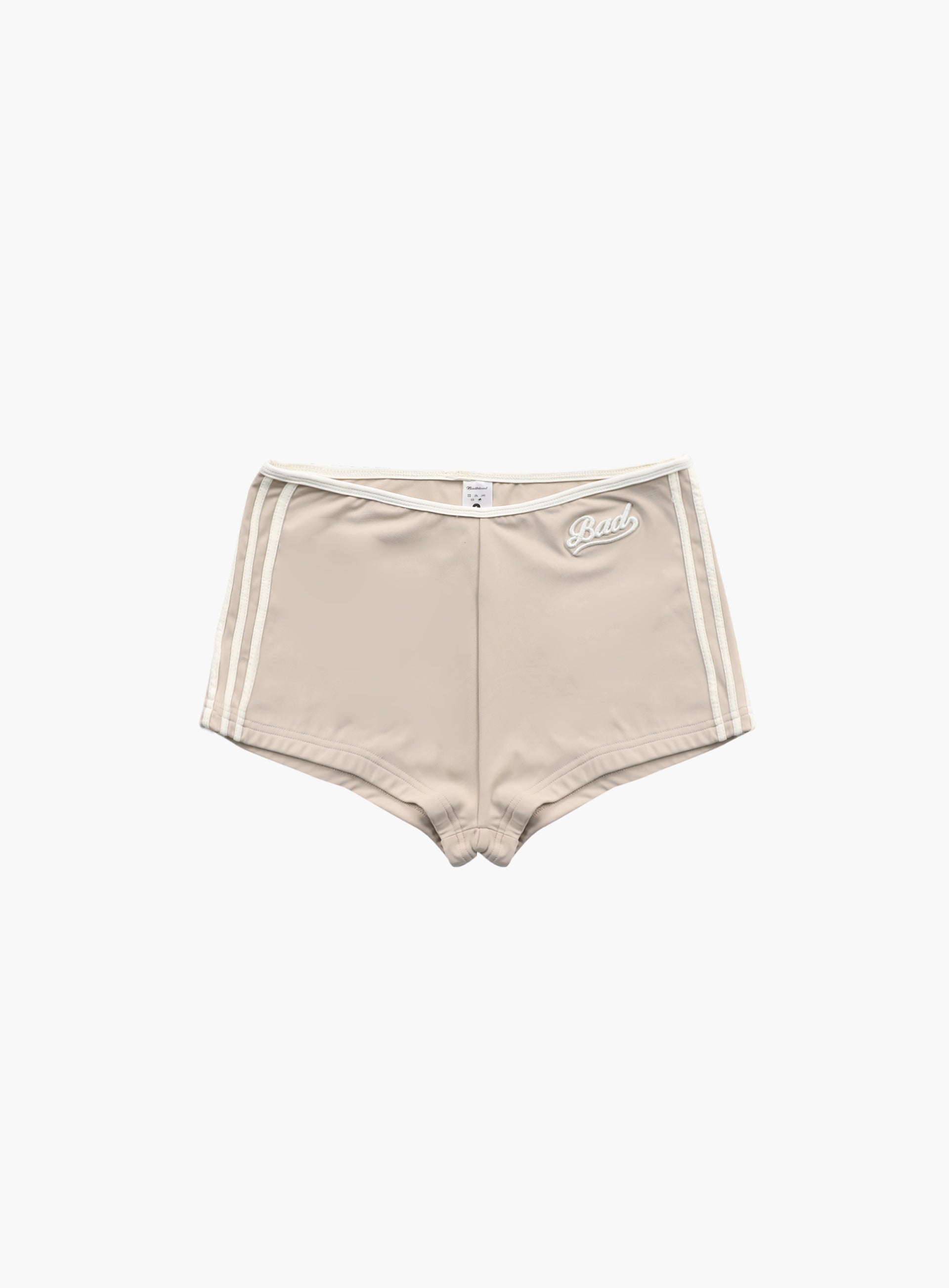 运动风格设计与复古配色的Wendy微短裤。采用高弹性和韧性的聚酰胺与氨纶混纺材料,贴身舒适。侧面对比色四线设计,前面有“Bad”标志,背面印有“Badblood Authentic”字样。