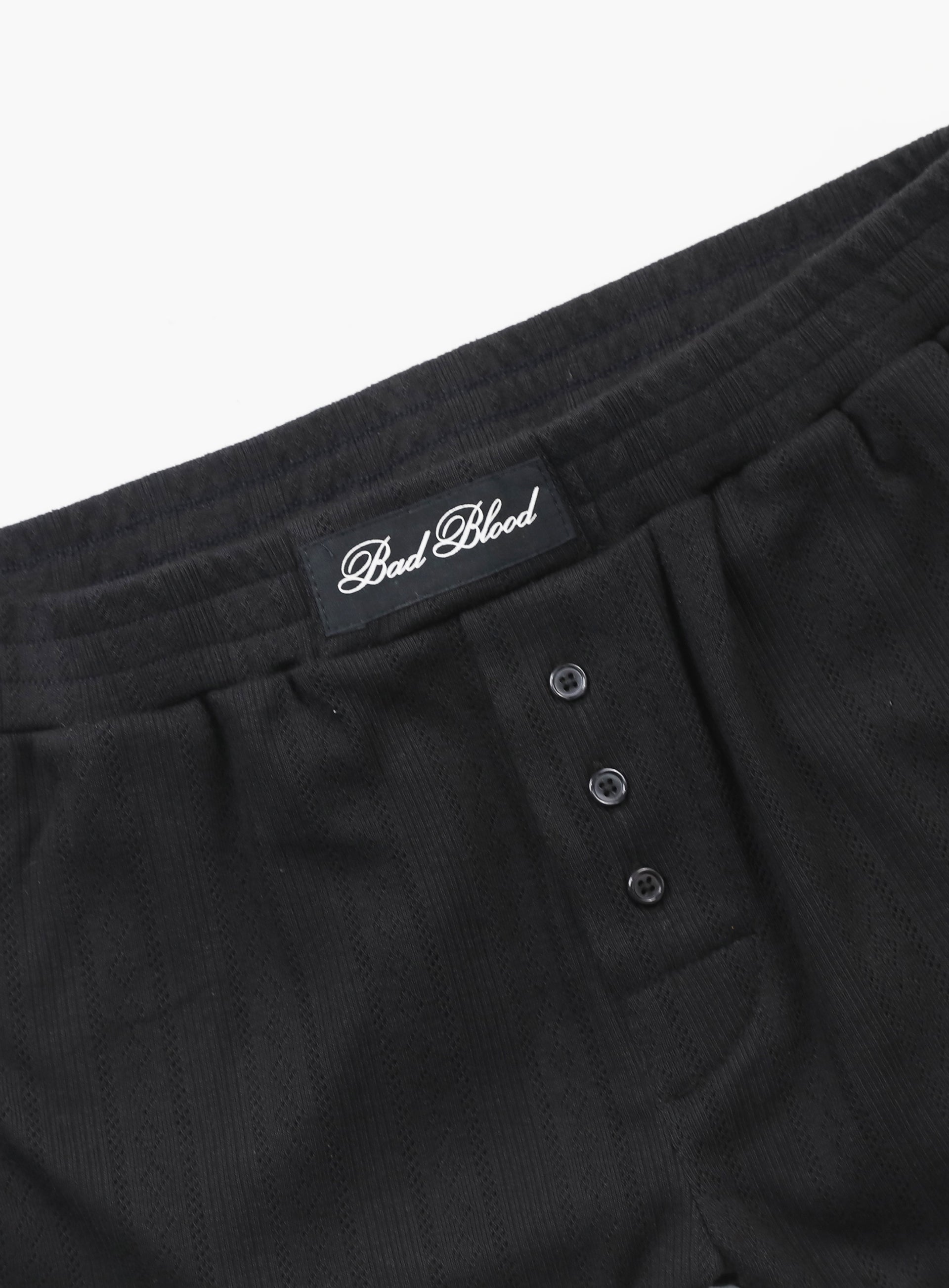 - 前腰松紧带和微型短裤标志贴片,松紧带内部有Badblood标志贴片