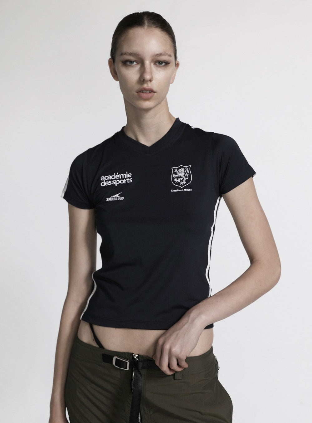 采用功能性面料的ADS V领短袖,营造出运动感十足的氛围。V领设计,侧面配色双线细节,搭配复古badblood标志链缝和正宗俱乐部贴布细节。