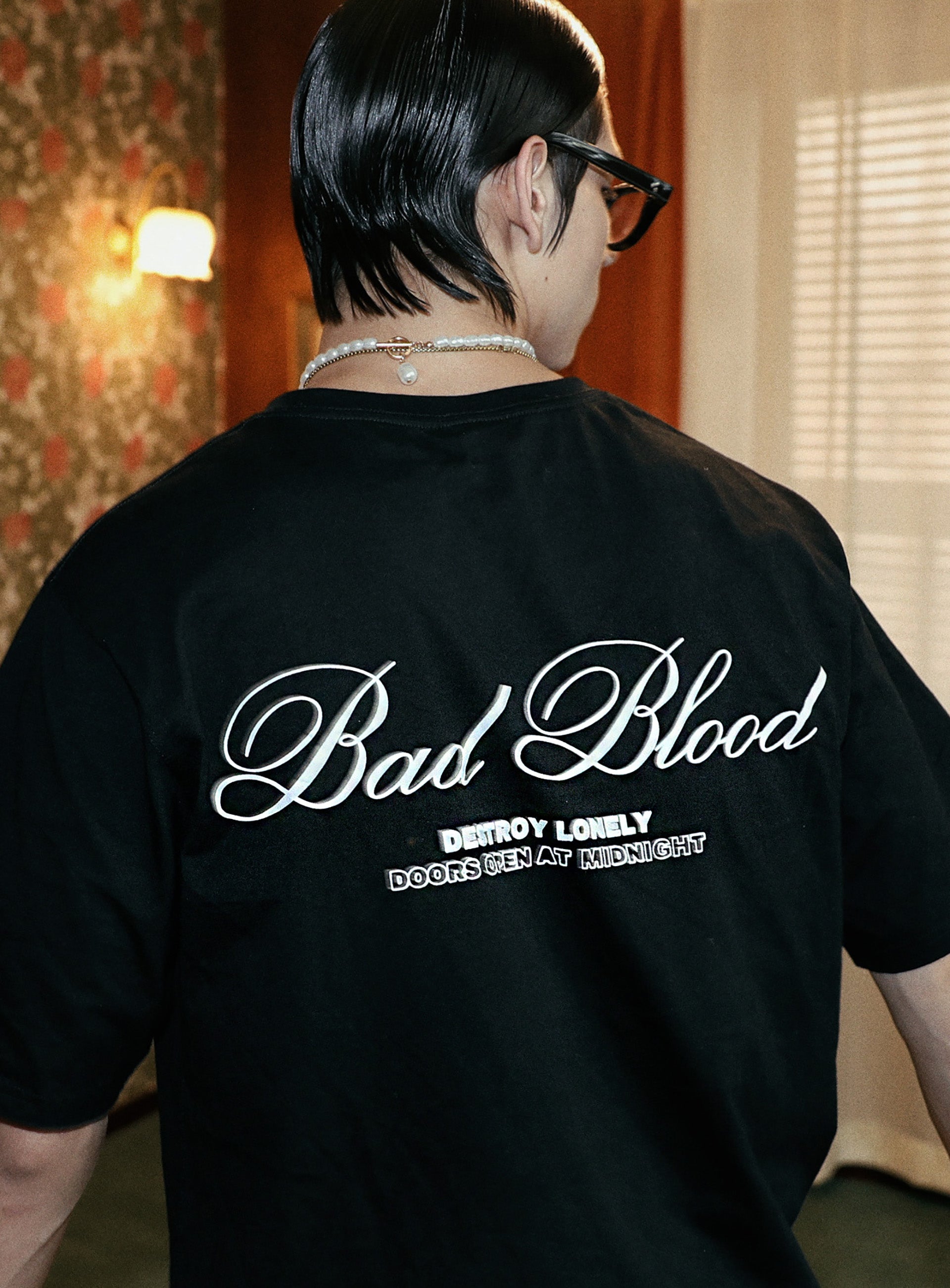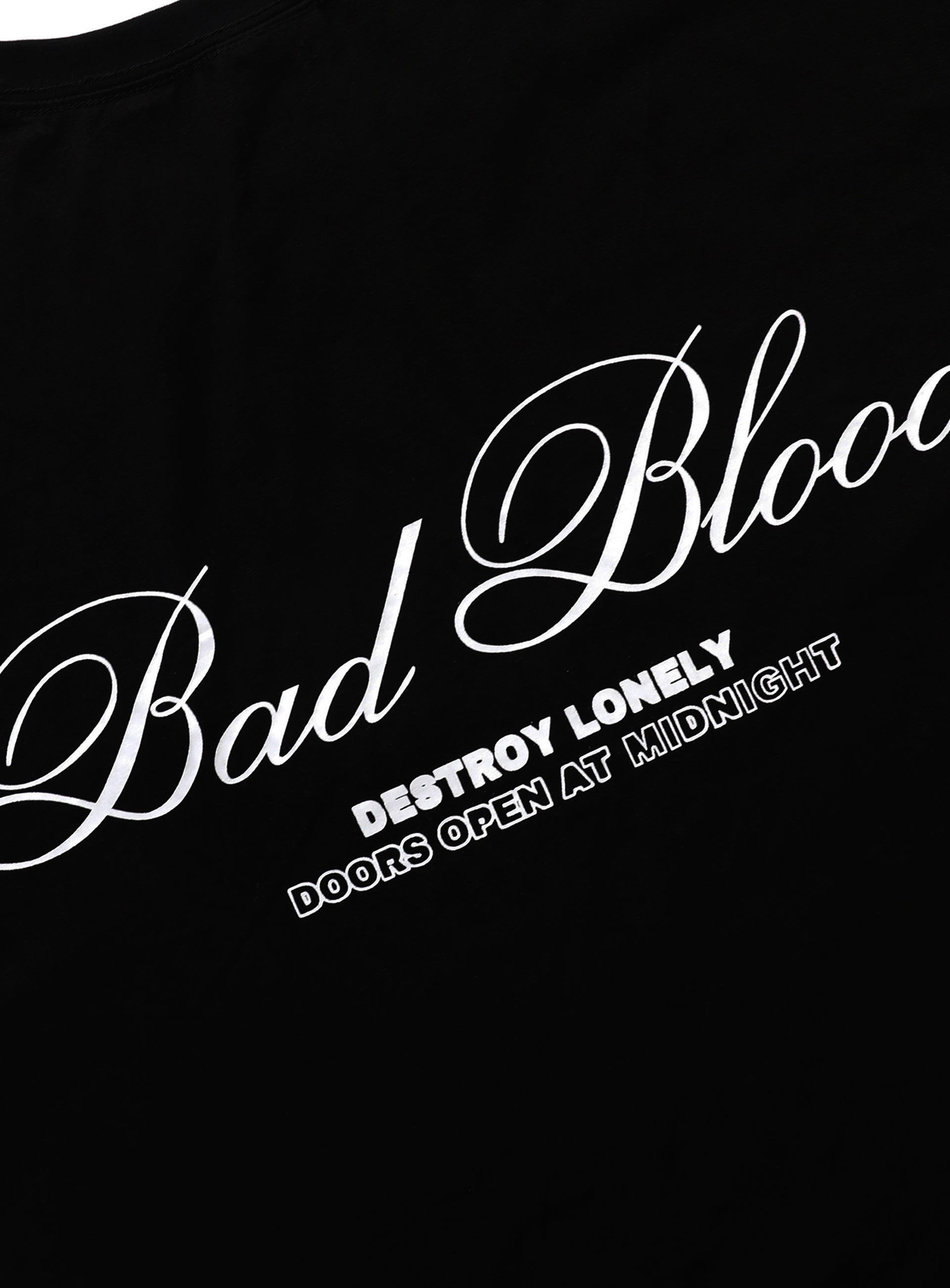 - 后背上方 Badblood 手写字体刺绣