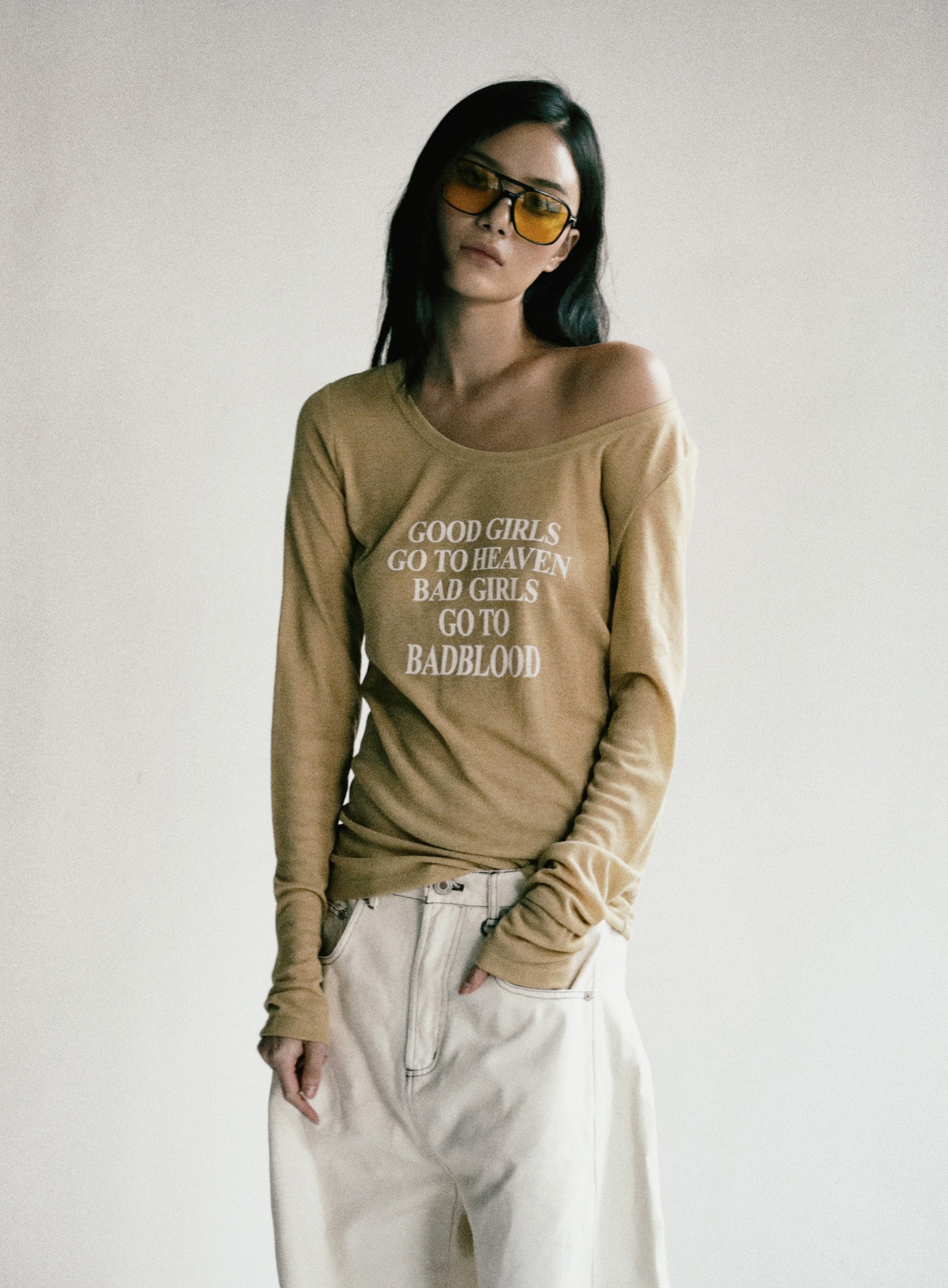 [w-tee24-093] Bad Girls 宽松上衣 - 香蕉色